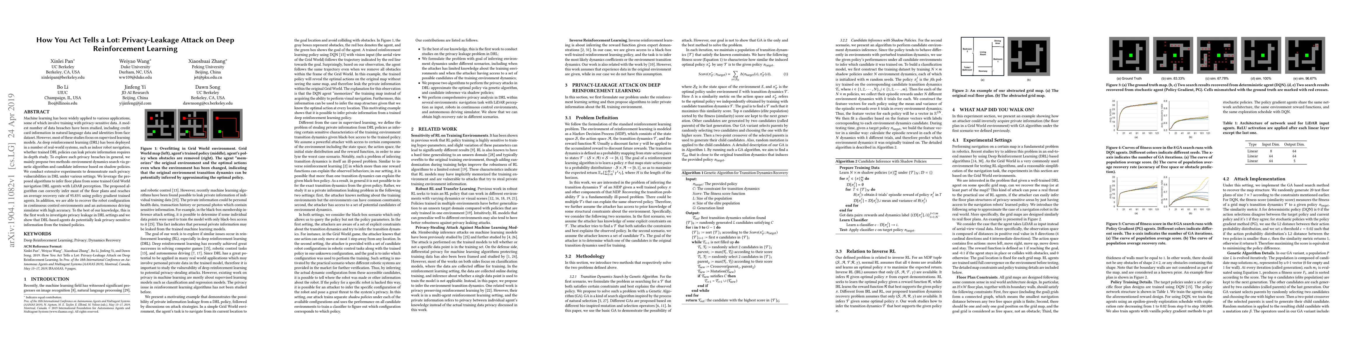 Researchers discovered that trained deep reinforcement learning agents can leak private information from their policies, highlighting a potential vulnerability in real-world systems like indoor robot navigation.