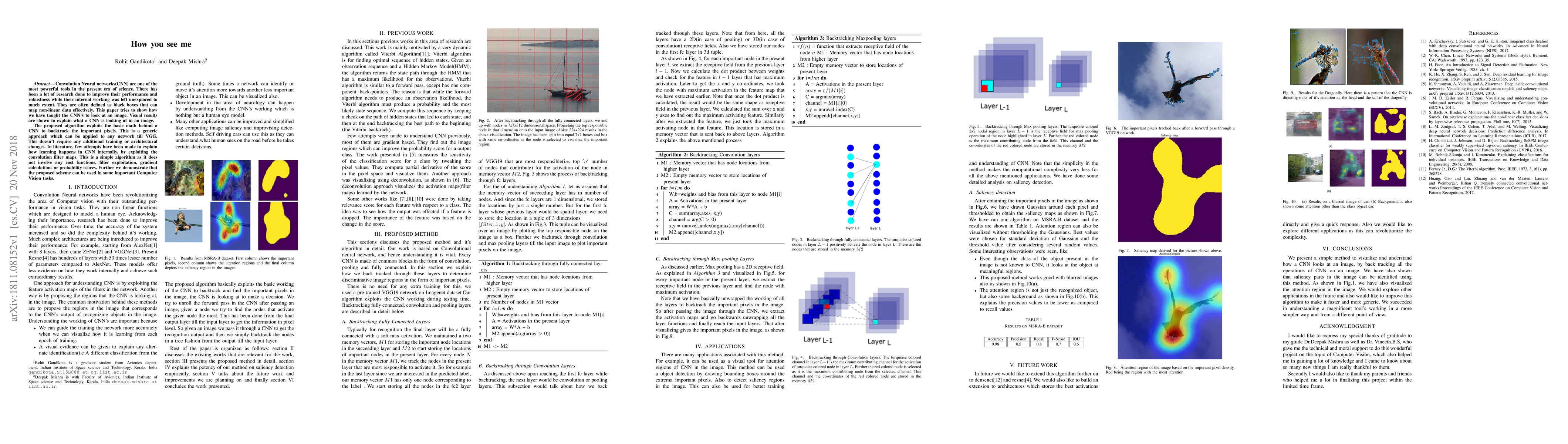 Convolution Neural Networks is one of the most powerful tools in the present era of science. There has been a lot of research done to improve their performance and robustness while their internal working was left unexplored to much extent. They are often defined as black boxes that can map non-linear data very effectively. This paper tries to show how CNN has learned to look at an image. The proposed algorithm exploits the basic math of CNN to backtrack the important pixels it is considering to predict. This is a simple algorithm which does not involve any training of its own over a pre-trained CNN which can classify.