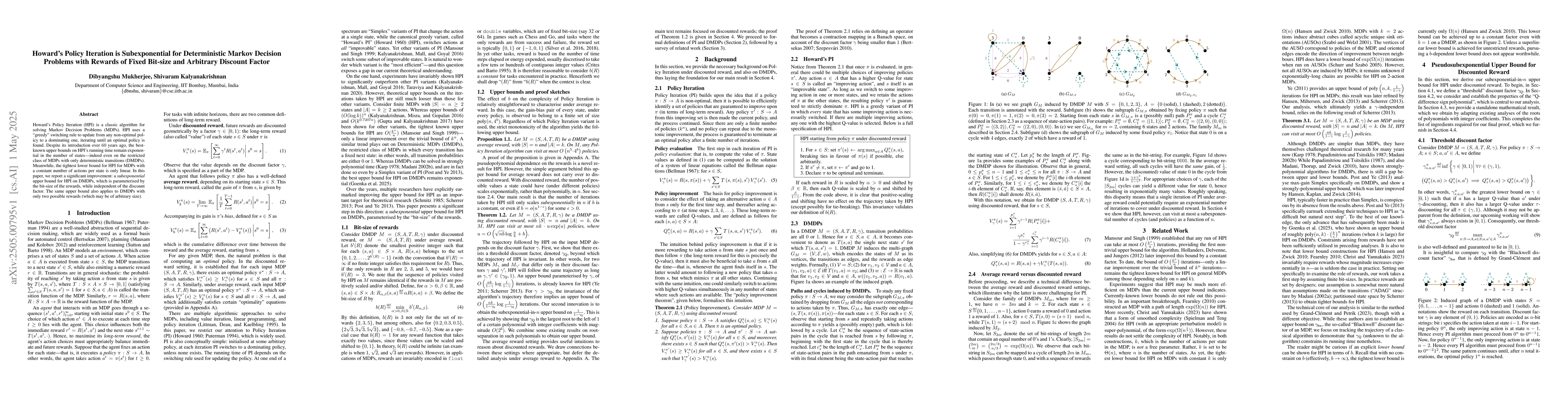 Howard's Policy Iteration improves to subexponential running time for deterministic Markov decision problems with rewards of fixed bit-size and arbitrary discount factor.