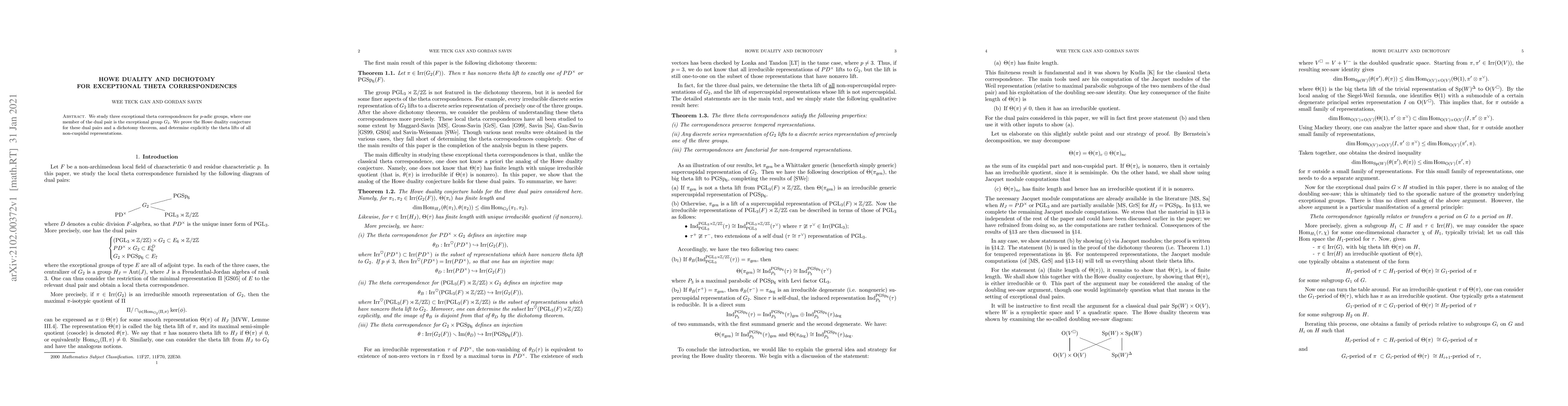 The paper proves the Howe duality conjecture and a dichotomy theorem for exceptional theta correspondences involving the exceptional group G2, and explicitly determines the theta lifts of all non-cuspidal representations. This provides significant insights into the structure of p-adic groups.