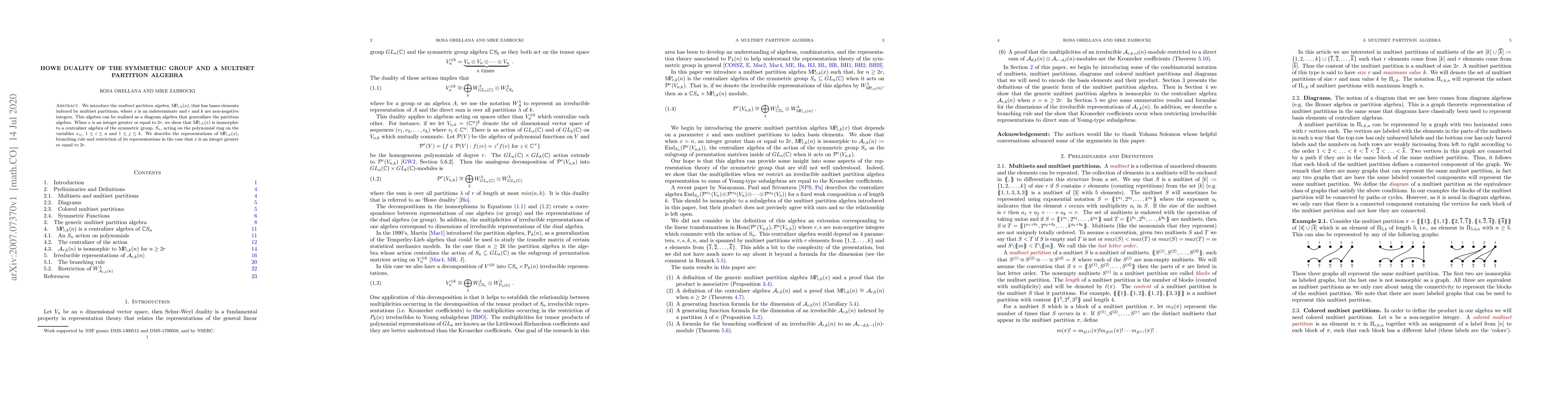 We introduce the multiset partition algebra, ${\rm M\!P}_{r,k}(x)$, that has bases elements indexed by multiset partitions, where $x$ is an indeterminate and $r$ and $k$ are non-negative integers. This algebra can be realized as a diagram algebra that generalizes the partition algebra. When $x$ is an integer greater or equal to $2r$, we show that ${\rm M\!P}_{r,k}(x)$ is isomorphic to a centralizer algebra of the symmetric group, $S_n$, acting on the polynomial ring on the variables $x_{ij}$, $1\leq i \leq n$ and $1\leq j\leq k$. We describe the representations of ${\rm M\!P}_{r,k}(x)$, branching rule and restriction of its representations in the case that $x$ is an integer greater or equal to $2r$.