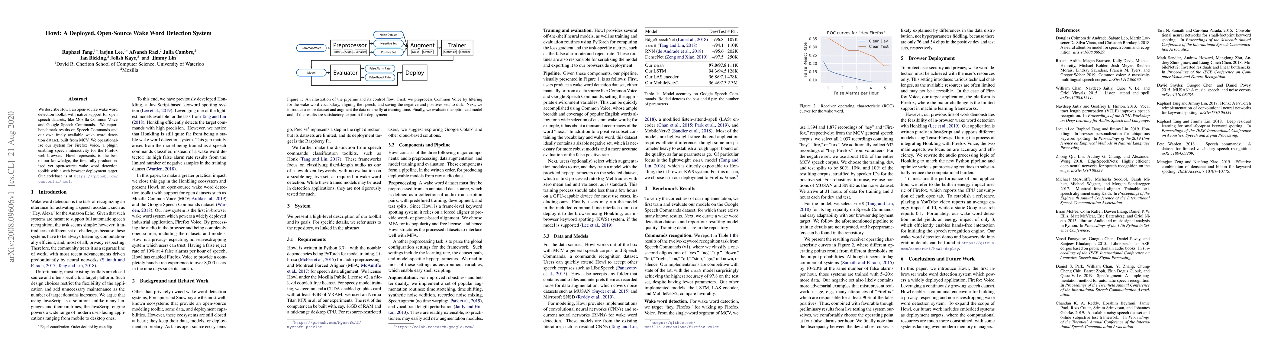 Howl is an open-source toolkit for wake word detection, designed to support open speech datasets and integrated into Firefox Voice for web browser speech interactivity. It is the first productionized, open-source toolkit with a web browser deployment focus, available at https://github.com/castorini/howl.