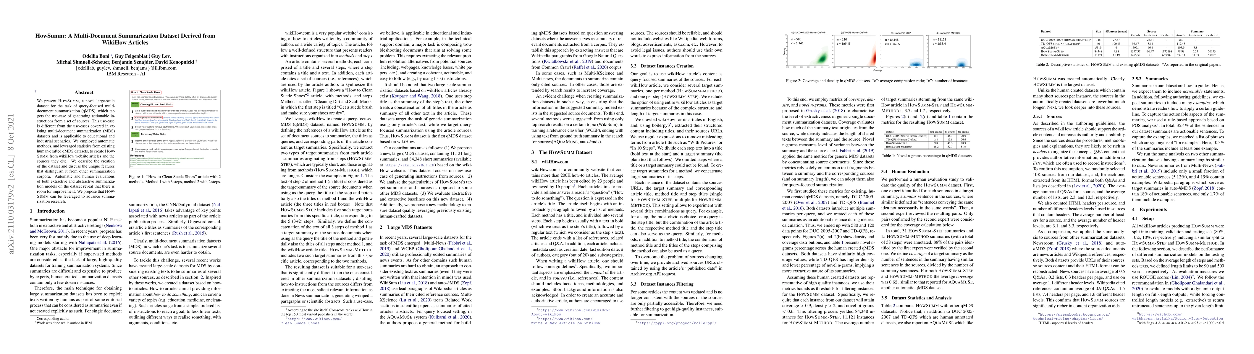HowSumm is a new large-scale dataset for query-focused multi-document summarization, derived from wikiHow articles, aimed at generating actionable instructions. It highlights unique features and shows room for improvement in both extractive and abstractive summarization models.