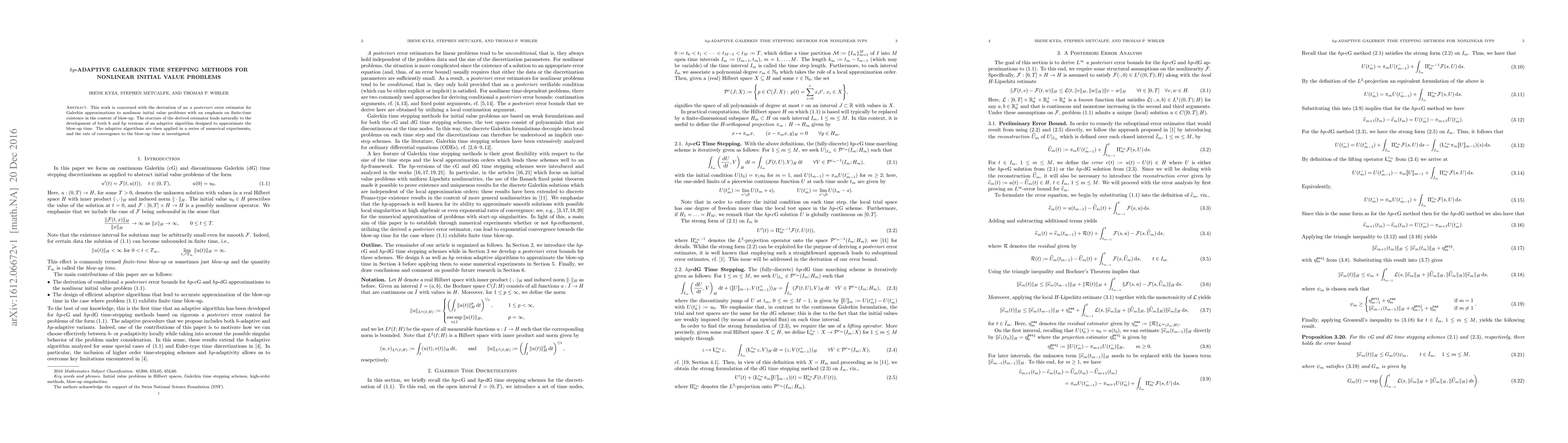 This work is concerned with the derivation of an a posteriori error estimator for Galerkin approximations to nonlinear initial value problems with an emphasis on finite-time existence in the context of blow-up. The stucture of the derived estimator leads naturally to the development of both h and hp versions of an adaptive algorithm designed to approximate the blow-up time. The adaptive algorithms are then applied in a series of numerical experiments, and the rate of convergence to the blow-up time is investigated.
