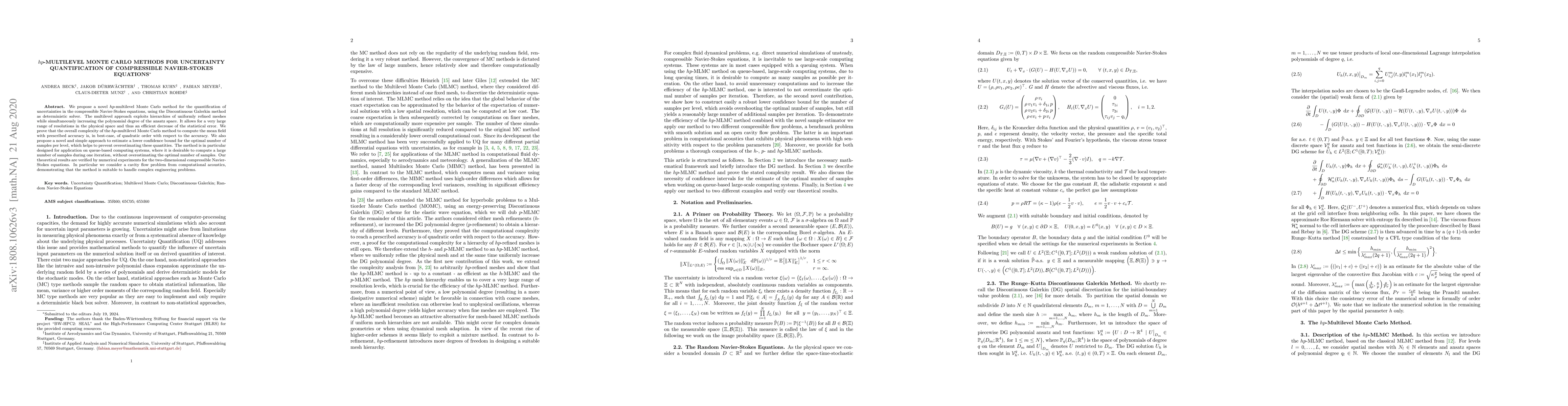This paper proposes an $hp$-multilevel Monte Carlo method for uncertainty quantification in compressible flows, leveraging the Discontinuous Galerkin method. The method efficiently reduces statistical error by combining mesh refinement and polynomial degree increase, achieving quadratic complexity with respect to accuracy. Numerical experiments validate the method's effectiveness for complex problems like cavity flow.