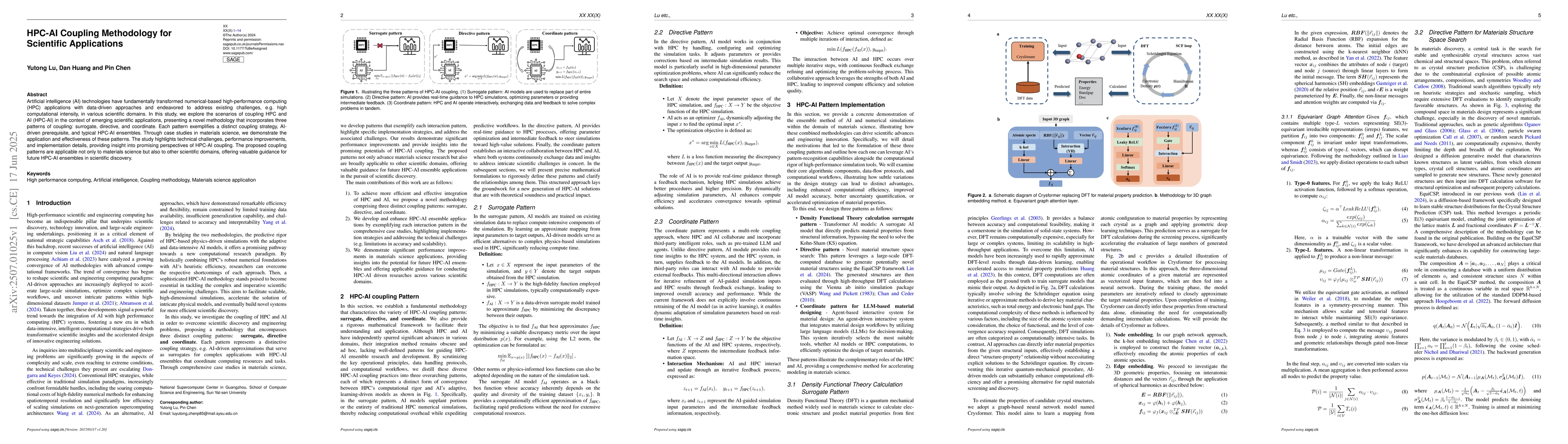Artificial intelligence (AI) technologies have fundamentally transformed numerical-based high-performance computing (HPC) applications with data-driven approaches and endeavored to address existing challenges, e.g. high computational intensity, in various scientific domains. In this study, we explore the scenarios of coupling HPC and AI (HPC-AI) in the context of emerging scientific applications, presenting a novel methodology that incorporates three patterns of coupling: surrogate, directive, and coordinate. Each pattern exemplifies a distinct coupling strategy, AI-driven prerequisite, and typical HPC-AI ensembles. Through case studies in materials science, we demonstrate the application and effectiveness of these patterns. The study highlights technical challenges, performance improvements, and implementation details, providing insight into promising perspectives of HPC-AI coupling. The proposed coupling patterns are applicable not only to materials science but also to other scientific domains, offering valuable guidance for future HPC-AI ensembles in scientific discovery.