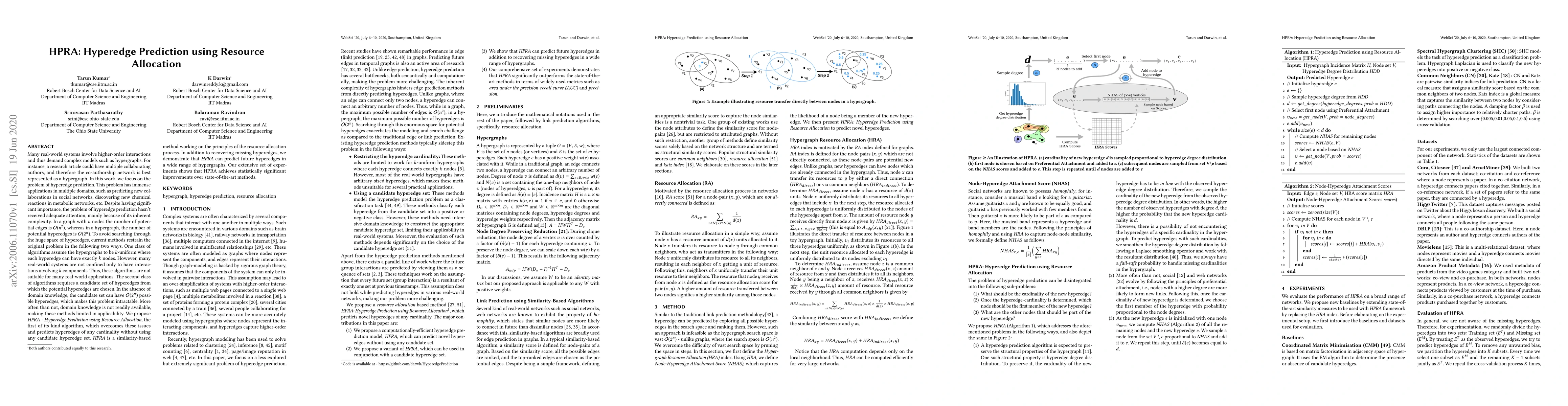 The paper introduces HPRA, a novel algorithm for hyperedge prediction in hypergraphs, which predicts hyperedges of any cardinality without requiring a predefined candidate set, addressing the complexity and intractability issues of existing methods. HPRA leverages resource allocation principles for similarity-based predictions, demonstrating effectiveness in various real-world applications.