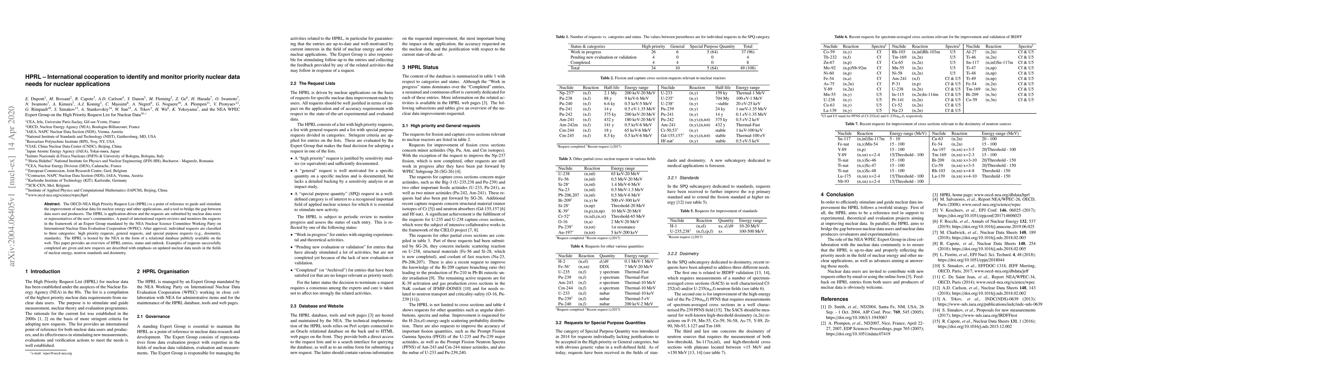 The OECD-NEA High Priority Request List (HPRL) is a point of reference to guide and stimulate the improvement of nuclear data for nuclear energy and other applications, and a tool to bridge the gap between data users and producers. The HPRL is application-driven and the requests are submitted by nuclear data users or representatives of the user's communities. A panel of international experts reviews and monitors the requests in the framework of an Expert Group mandated by the NEA Nuclear Science Committee Working Party on International Nuclear Data Evaluation Cooperation (WPEC). After approval, individual requests are classified to three categories: high priority requests, general requests, and special purpose requests (e.g., dosimetry, standards). The HPRL is hosted by the NEA in the form of a relational database publicly available on the web. This paper provides an overview of HPRL entries, status and outlook. Examples of requests successfully completed are given and new requests are described with emphasis on updated nuclear data needs in the fields of nuclear energy, neutron standards and dosimetry.