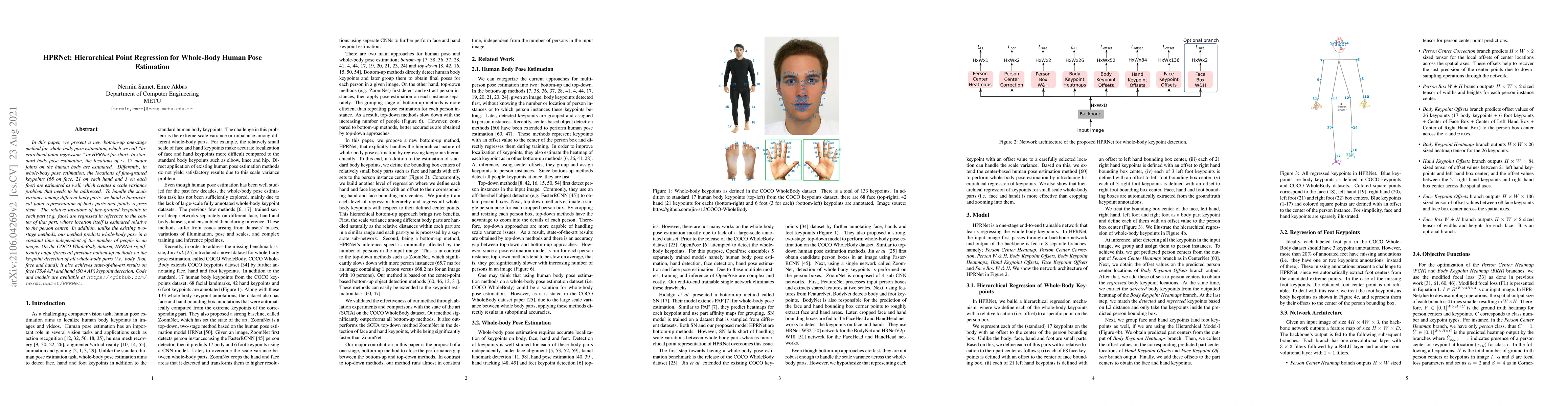 HPRNet introduces a novel bottom-up one-stage method for whole-body human pose estimation, addressing scale variance through hierarchical point regression. It outperforms previous methods on keypoint detection for body, foot, face, and hand, achieving state-of-the-art results on the COCO WholeBody dataset.