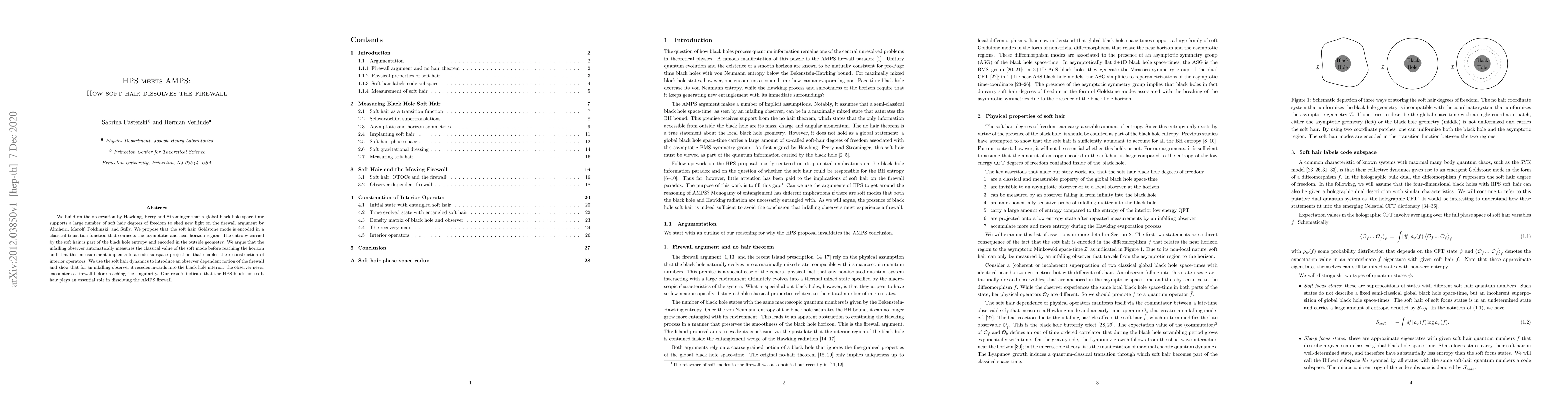 We build on the observation by Hawking, Perry and Strominger that a global black hole space-time supports a large number of soft hair degrees of freedom to shed new light on the firewall argument by Almheiri, Marolf, Polchinski, and Sully. We propose that the soft hair Goldstone mode is encoded in a classical transition function that connects the asymptotic and near horizon region. The entropy carried by the soft hair is part of the black hole entropy and encoded in the outside geometry. We argue that the infalling observer automatically measures the classical value of the soft mode before reaching the horizon and that this measurement implements a code subspace projection that enables the reconstruction of interior operators. We use the soft hair dynamics to introduce an observer dependent notion of the firewall and show that for an infalling observer it recedes inwards into the black hole interior: the observer never encounters a firewall before reaching the singularity. Our results indicate that the HPS black hole soft hair plays an essential role in dissolving the AMPS firewall.