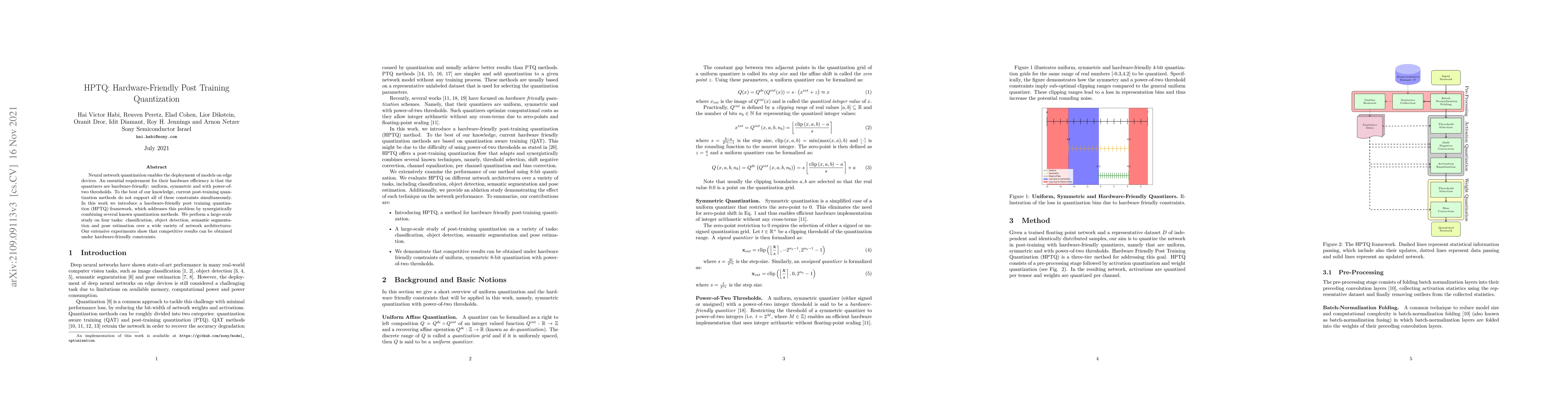 This paper introduces HPTQ, a framework for hardware-friendly post-training quantization that combines existing methods to meet constraints of uniformity, symmetry, and power-of-two thresholds. Extensive experiments across multiple tasks demonstrate competitive results under these hardware-friendly constraints.