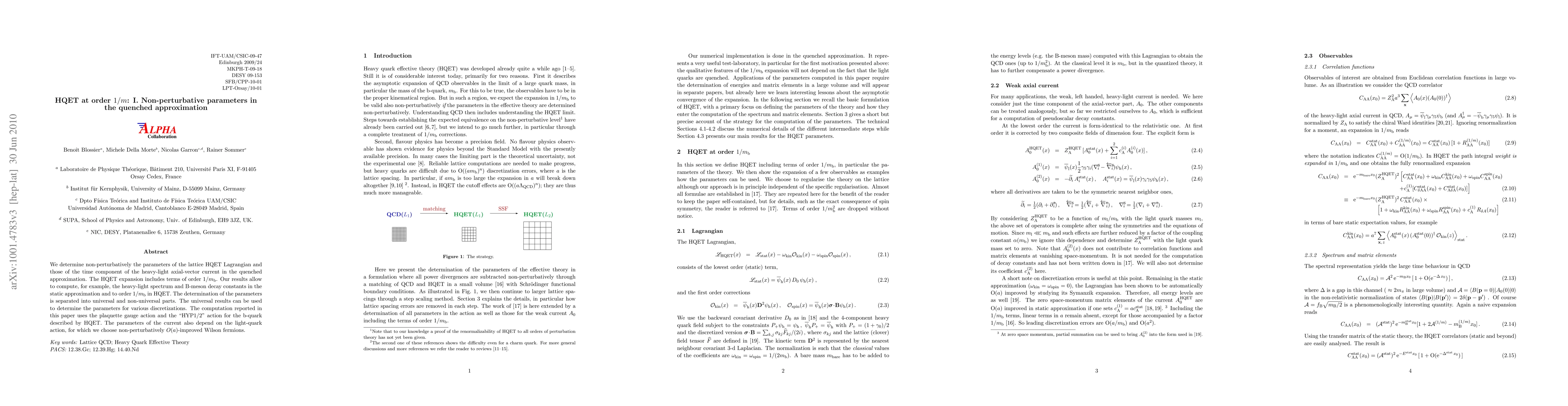 This paper determines non-perturbative parameters of the lattice Heavy Quark Effective Theory (HQET) Lagrangian and the heavy-light axial-vector current in the quenched approximation, including terms of order 1/m. The results allow for the computation of the heavy-light spectrum and B-meson decay constants, separated into universal and non-universal parts, with the universal results applicable to various discretizations.