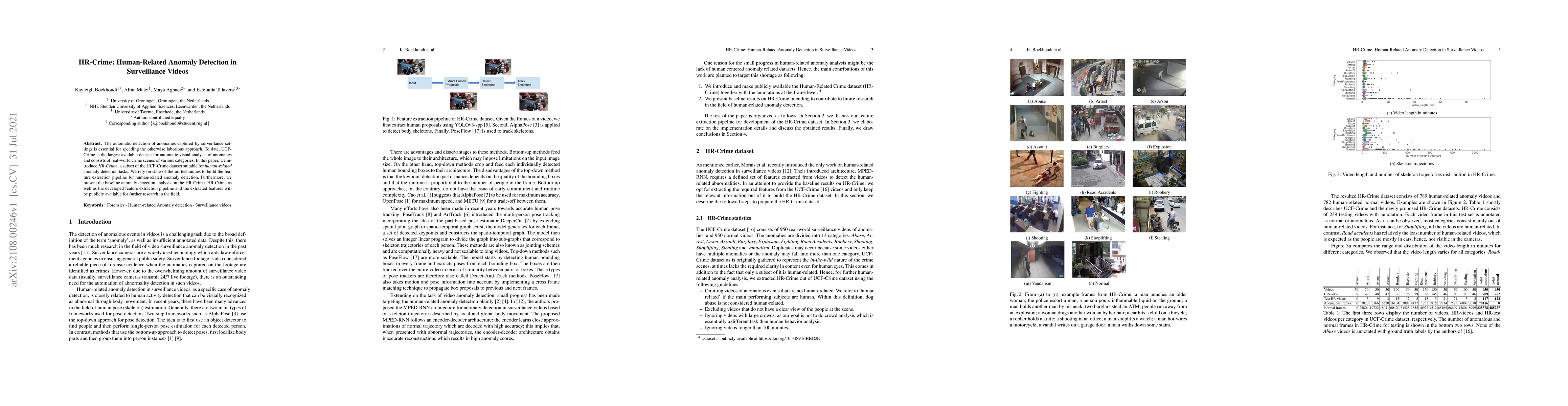 This paper introduces HR-Crime, a subset of the UCF-Crime dataset focused on human-related anomaly detection in surveillance videos. It presents a state-of-the-art feature extraction pipeline and baseline anomaly detection analysis, with the dataset and features to be publicly available for further research.