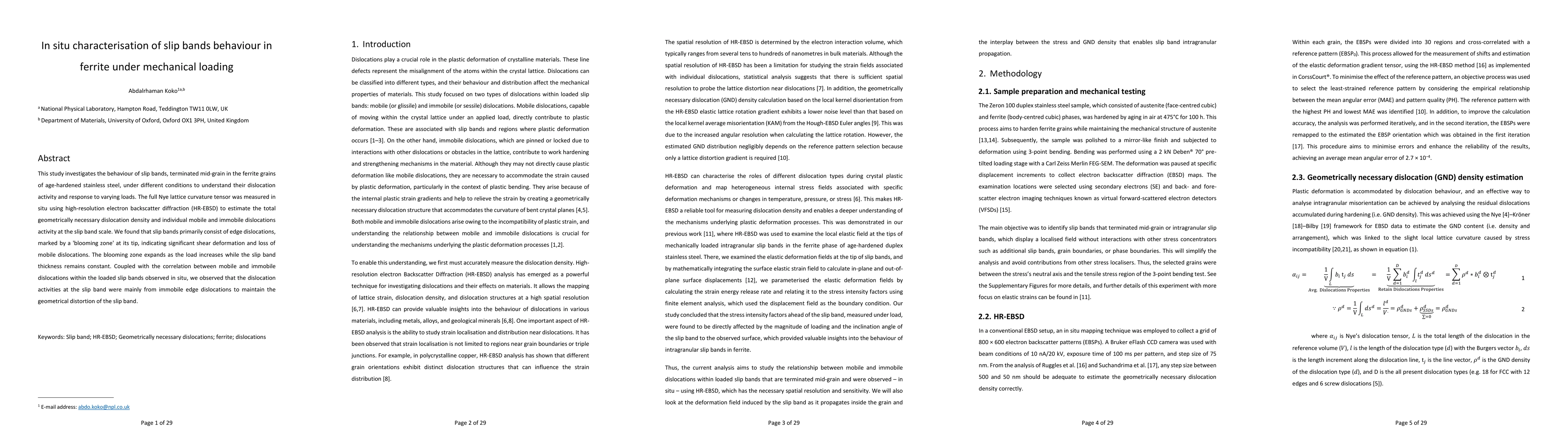 This paper investigates dislocation behavior in loaded slip bands using HR-EBSD, revealing that immobile edge dislocations primarily maintain geometrical distortion, while intense strain gradients induce bursts of dislocations linked to hot spots.