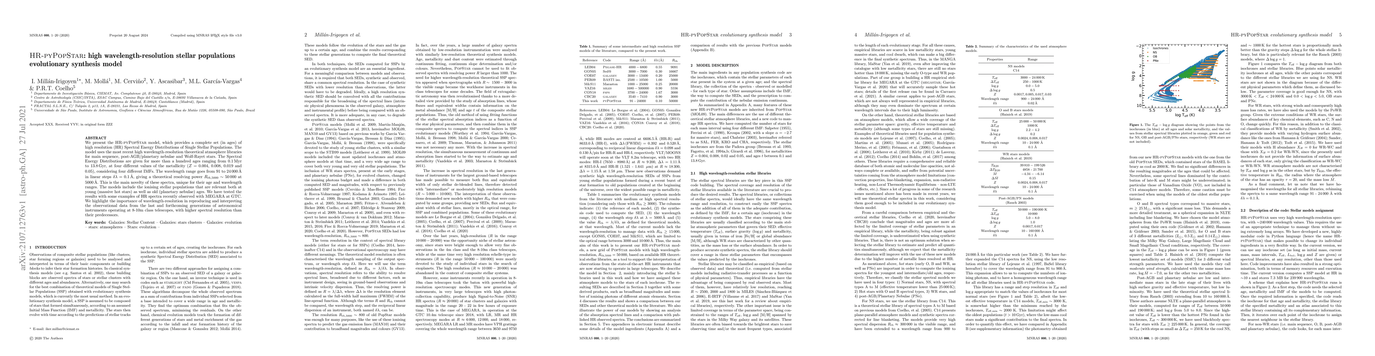 We present the HR-pyPopStar model, which provides a complete set (in ages) of high resolution (HR) Spectral Energy Distributions of Single Stellar Populations. The model uses the most recent high wavelength-resolution theoretical atmosphere libraries for main sequence, post-AGB/planetary nebulae and Wolf-Rayet stars. The Spectral Energy Distributions are given for more than a hundred ages ranging from 0.1 Myr to 13.8 Gyr, at four different values of the metallicity (Z = 0.004, 0.008, 0.019 and 0.05), considering four different IMFs. The wavelength range goes from 91 to 24 000 {\AA} in linear steps {\delta}{\lambda} = 0.1 {\AA}, giving a theoretical resolving power R_{th,5000} ~ 50 000 at 5000 {\AA}. This is the main novelty of these spectra, unique for their age and wavelength ranges. The models include the ionising stellar populations that are relevant both at young (massive hot stars) as well as old (planetary nebulae) ages. We have tested the results with some examples of HR spectra recently observed with MEGARA at GTC. We highlight the importance of wavelength-resolution in reproducing and interpreting the observational data from the last and forthcoming generations of astronomical instruments operating at 8-10m class telescopes, with higher spectral resolution than their predecessors.
