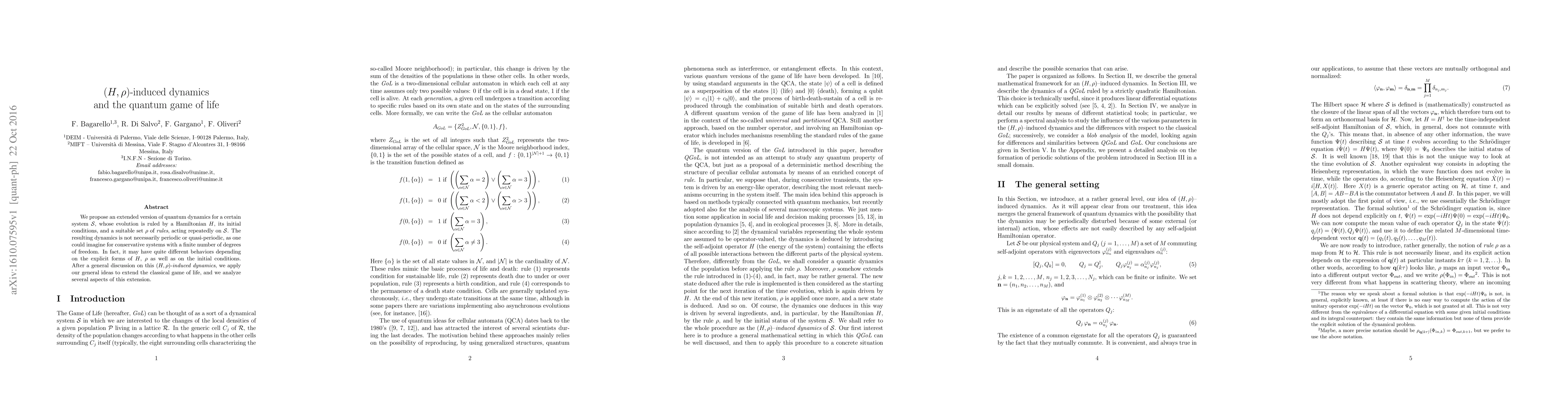This paper introduces an extended quantum dynamics framework governed by a Hamiltonian $H$ and a set of rules $\rho$, demonstrating its complexity through non-periodic behaviors. The authors apply this framework to extend the classical game of life, analyzing various aspects of this quantum-enhanced version.
