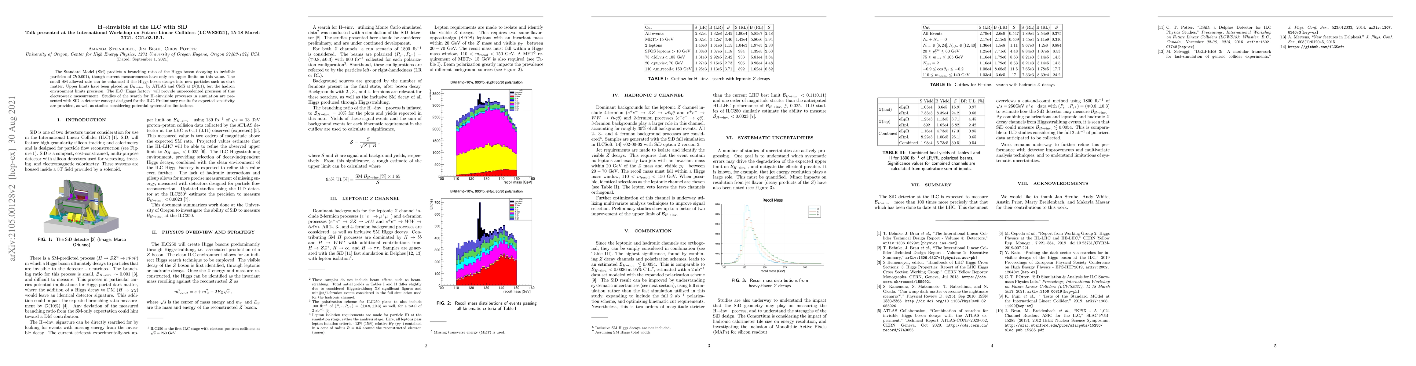 This paper investigates the potential of the International Linear Collider (ILC) with the SiD detector to enhance precision measurements of Higgs boson decays to invisible particles, potentially revealing new physics beyond the Standard Model. Preliminary results suggest significant improvements over current LHC limits, despite potential systematic uncertainties.
