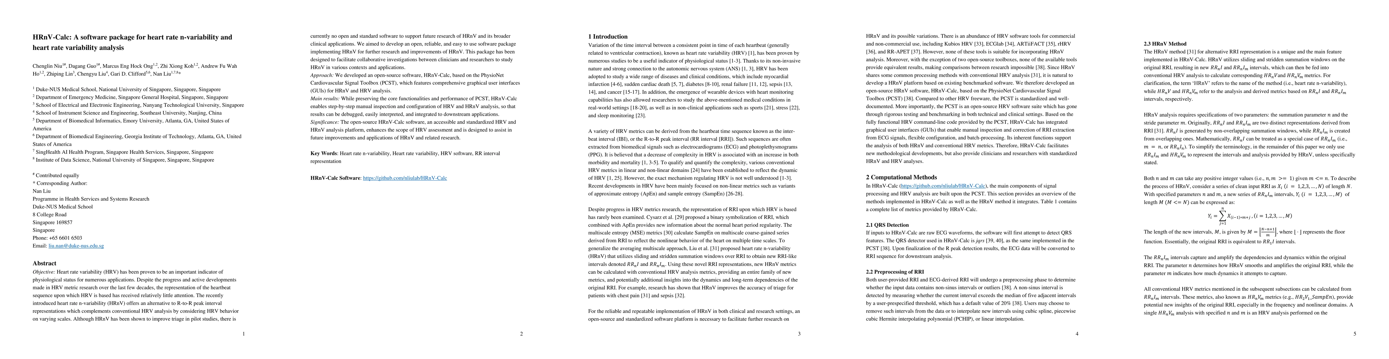 HRnV-Calc is an open-source software package developed to facilitate heart rate n-variability (HRnV) and heart rate variability (HRV) analysis, offering a comprehensive graphical user interface for collaborative research and clinical applications. The software aims to improve HRV assessment and support future HRnV research.