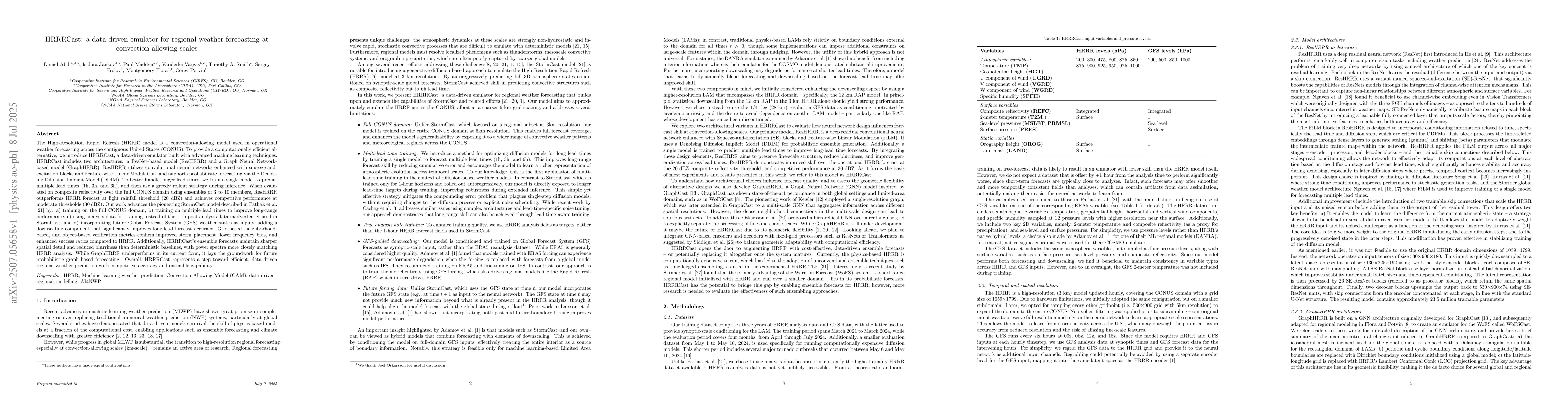 The High-Resolution Rapid Refresh (HRRR) model is a convection-allowing model used in operational weather forecasting across the contiguous United States (CONUS). To provide a computationally efficient alternative, we introduce HRRRCast, a data-driven emulator built with advanced machine learning techniques. HRRRCast includes two architectures: a ResNet-based model (ResHRRR) and a Graph Neural Network-based model (GraphHRRR). ResHRRR uses convolutional neural networks enhanced with squeeze-and-excitation blocks and Feature-wise Linear Modulation, and supports probabilistic forecasting via the Denoising Diffusion Implicit Model (DDIM). To better handle longer lead times, we train a single model to predict multiple lead times (1h, 3h, and 6h), then use a greedy rollout strategy during inference. When evaluated on composite reflectivity over the full CONUS domain using ensembles of 3 to 10 members, ResHRRR outperforms HRRR forecast at light rainfall threshold (20 dBZ) and achieves competitive performance at moderate thresholds (30 dBZ). Our work advances the StormCast model of Pathak et al. [21] by: a) training on the full CONUS domain, b) using multiple lead times to improve long-range skill, c) training on analysis data instead of the +1h post-analysis data inadvertently used in StormCast, and d) incorporating future GFS states as inputs, enabling downscaling that improves long-lead accuracy. Grid-, neighborhood-, and object-based metrics confirm better storm placement, lower frequency bias, and higher success ratios than HRRR. HRRRCast ensemble forecasts also maintain sharper spatial detail, with power spectra more closely matching HRRR analysis. While GraphHRRR underperforms in its current form, it lays groundwork for future graph-based forecasting. HRRRCast represents a step toward efficient, data-driven regional weather prediction with competitive accuracy and ensemble capability.
