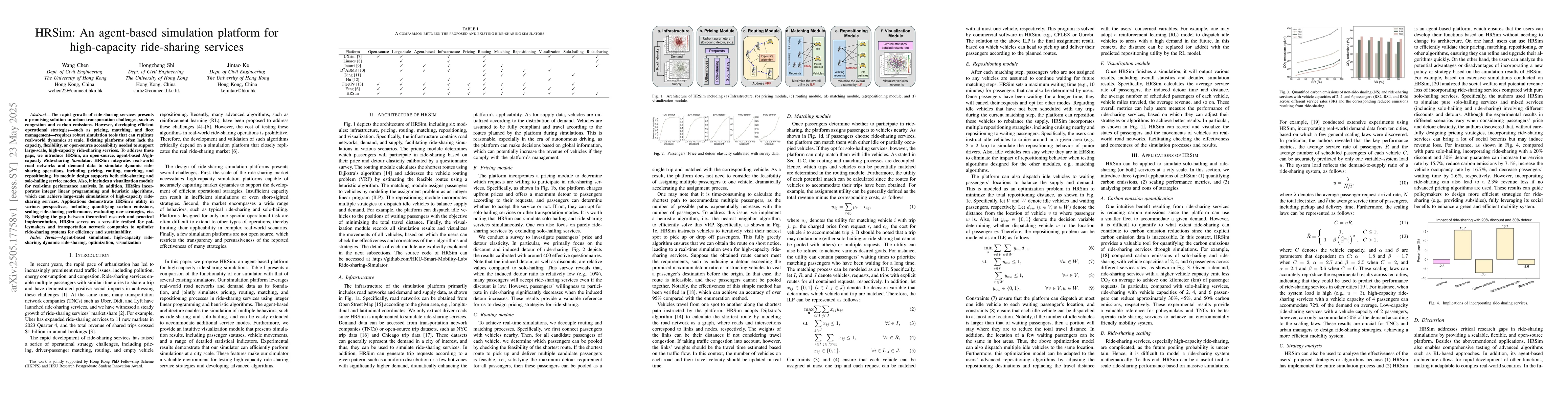 The main technical contribution is HRSim, an open-source, agent-based simulation platform capable of handling high-capacity ride-sharing services with real-world data integration and advanced algorithms.