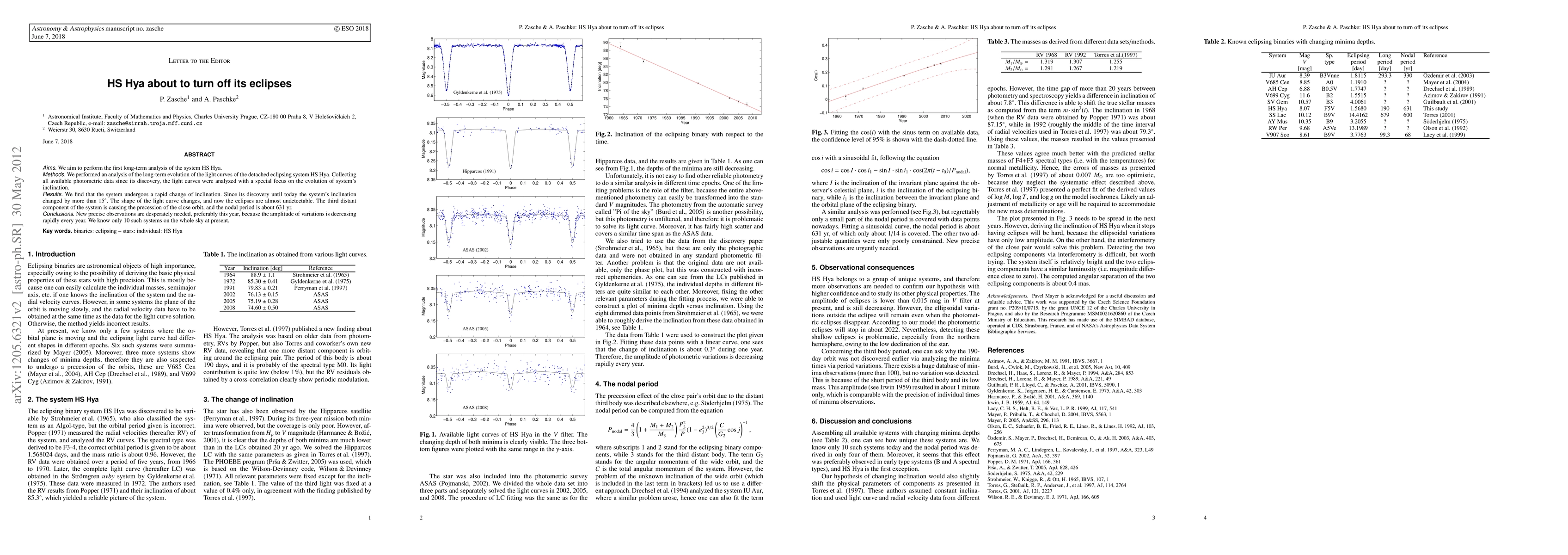 Aims: We aim to perform the first long-term analysis of the system HS Hya. Methods: We performed an analysis of the long-term evolution of the light curves of the detached eclipsing system HS Hya. Collecting all available photometric data since its discovery, the light curves were analyzed with a special focus on the evolution of system's inclination. Results: We find that the system undergoes a rapid change of inclination. Since its discovery until today the system's inclination changed by more than 15 deg. The shape of the light curve changes, and now the eclipses are almost undetectable. The third distant component of the system is causing the precession of the close orbit, and the nodal period is about 631 yr. Conclusions: New precise observations are desperately needed, preferably this year, because the amplitude of variations is decreasing rapidly every year. We know only 10 such systems on the whole sky at present.