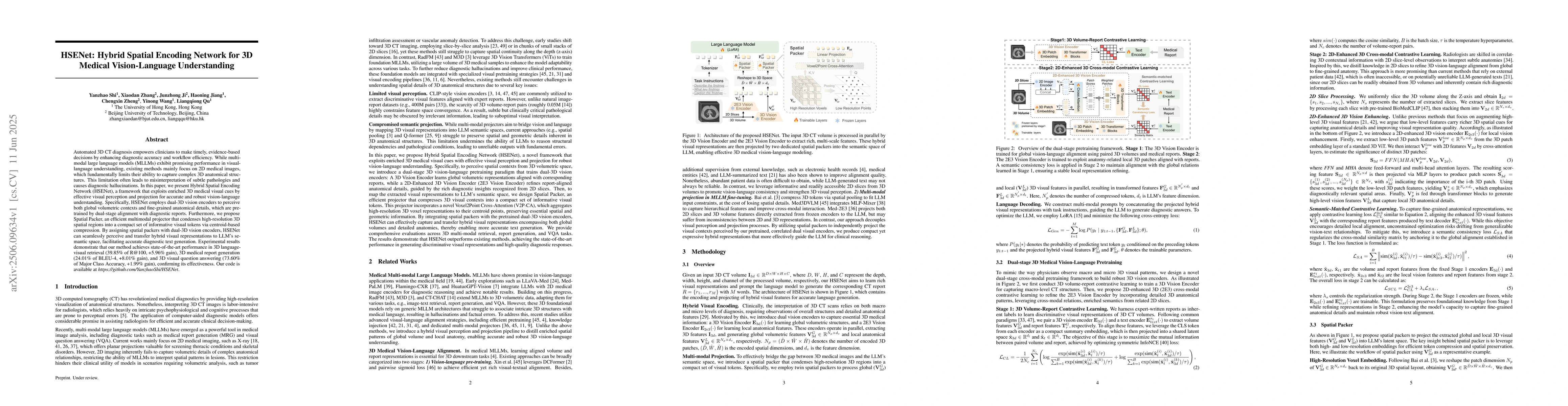 HSENet proposes a framework that enhances 3D medical vision-language understanding with robust vision perception and projection, achieving state-of-the-art performance in diagnosis and text generation tasks.