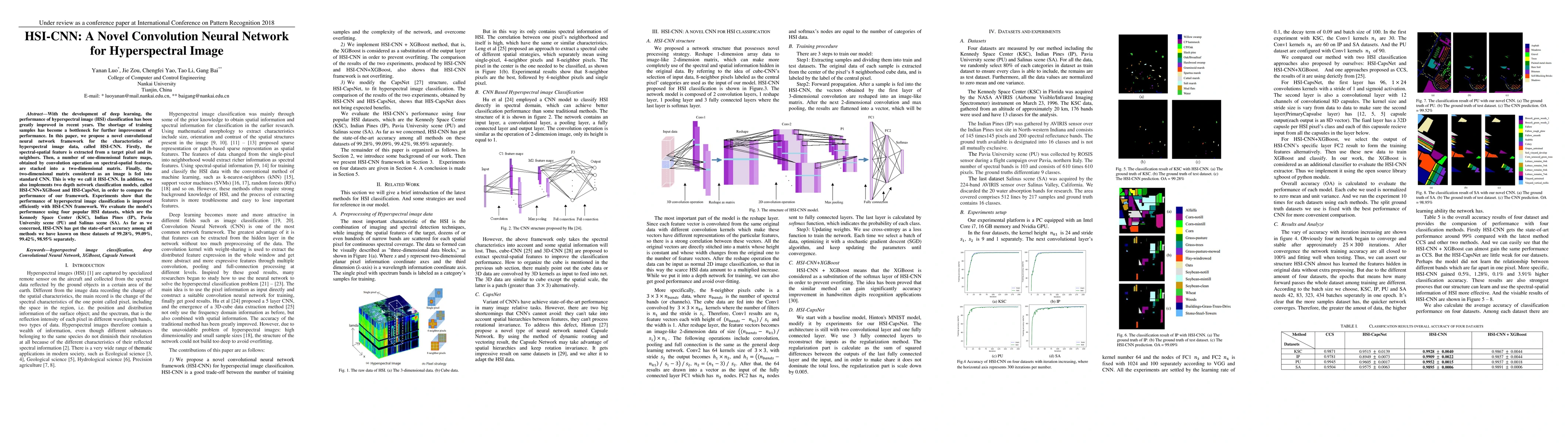 This research introduces HSI-CNN, a novel convolutional neural network framework designed to improve the classification of hyperspectral images (HSI). The proposed method extracts spectral-spatial features and feeds them into a standard CNN, achieving state-of-the-art accuracy on four popular HSI datasets. For more details, please refer to the original paper.