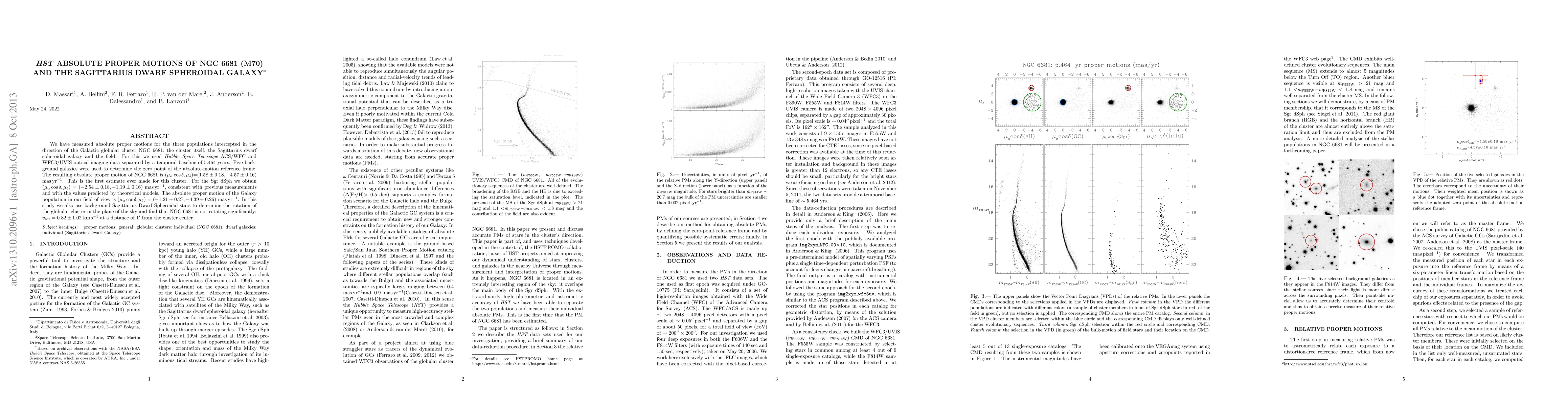 This study uses Hubble Space Telescope data to measure the absolute proper motions of NGC 6681 (M70), the Sagittarius Dwarf Spheroidal Galaxy, and the surrounding field, finding no significant rotation in NGC 6681. The proper motions are ($\mu_{\alpha}\cos\delta, \mu_{\delta}$) = ($1.58\pm0.18, -4.57\pm0.16$) \masyr for NGC 6681, and ($-2.54\pm0.18, -1.19\pm0.16$) \masyr for the Sagittarius Dwarf Spheroidal.