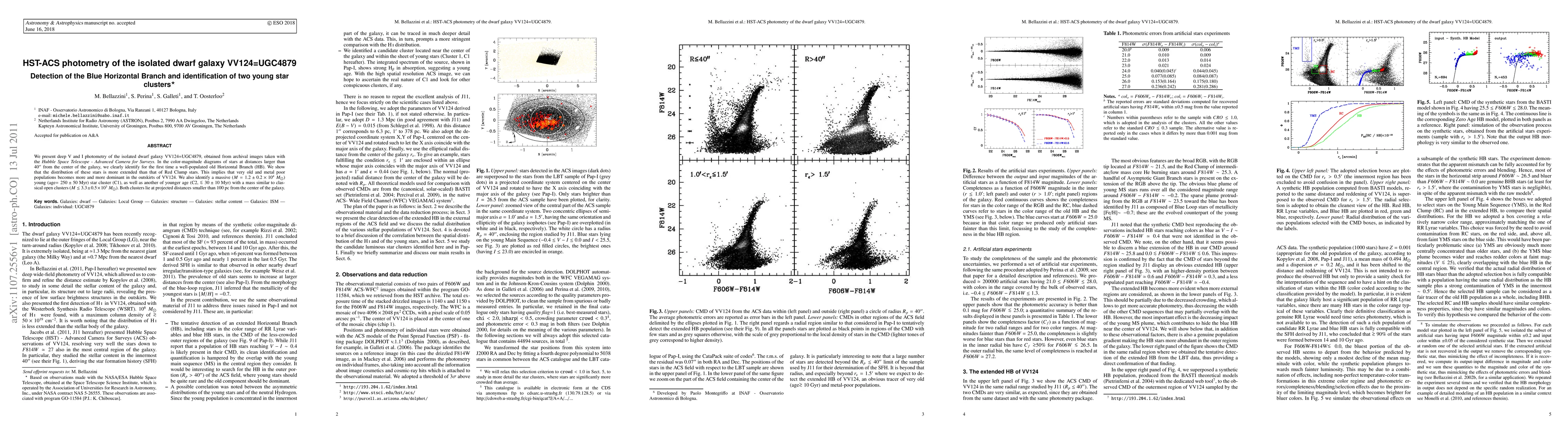 This study uses HST-ACS photometry to analyze the isolated dwarf galaxy VV124=UGC4879, revealing a well-populated old Horizontal Branch and identifying two young star clusters, one massive and one smaller, indicating diverse stellar populations.