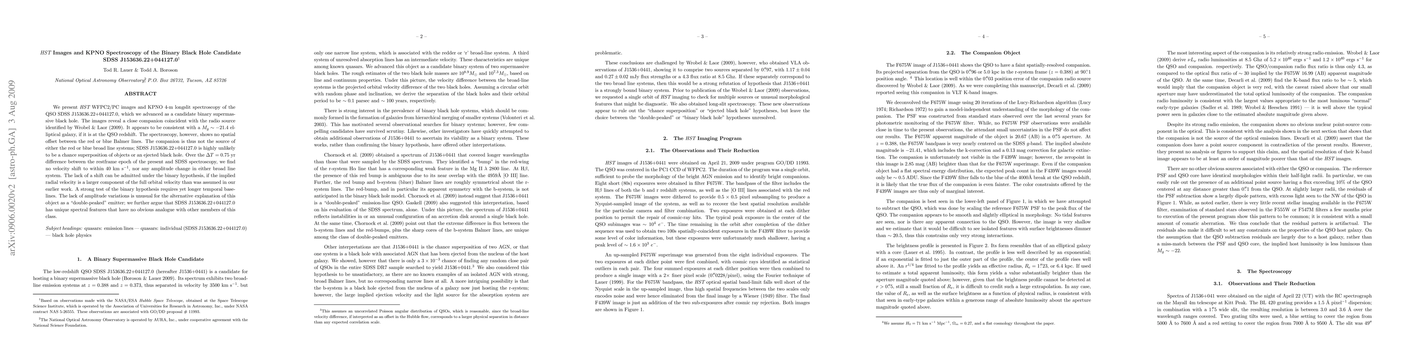 This paper uses HST and KPNO spectroscopy to investigate the binary black hole candidate SDSS J153636.22+044127.0, revealing a close companion but finding no spatial offset in Balmer lines, suggesting it is not a binary system. The study concludes that the object lacks typical amplitude variations for a "double-peaked" emitter and has unique spectral features.