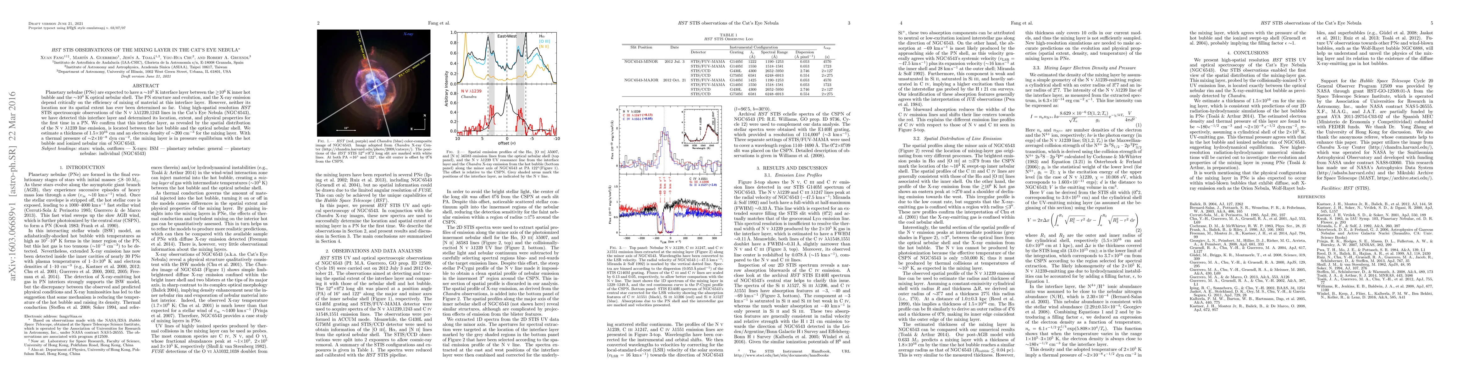 Planetary nebulae (PNe) are expected to have a ~10$^{5}$ K interface layer between the $\geq$10$^{6}$ K inner hot bubble and the ~10$^{4}$ K optical nebular shell. The PN structure and evolution, and the X-ray emission depend critically on the efficiency of mixing of material at this interface layer. However, neither its location nor its spatial extent has ever been determined so far. Using high-spatial resolution HST STIS spectroscopic observations of the N V 1239,1243 lines in the Cat's Eye Nebula (NGC 6543), we have detected this interface layer and determined its location, extent, and physical properties for the first time in a PN. We confirm that this interface layer, as revealed by the spatial distribution of the N V 1239 line emission, is located between the hot bubble and the optical nebular shell. We estimate a thickness of 1.5$\times$10$^{16}$ cm and an electron density of ~200 cm$^{-3}$ for the mixing layer. With a thermal pressure of ~2$\times$10$^{-8}$ dyn cm$^{-2}$, the mixing layer is in pressure equilibrium with the hot bubble and ionized nebular rim of NGC 6543.