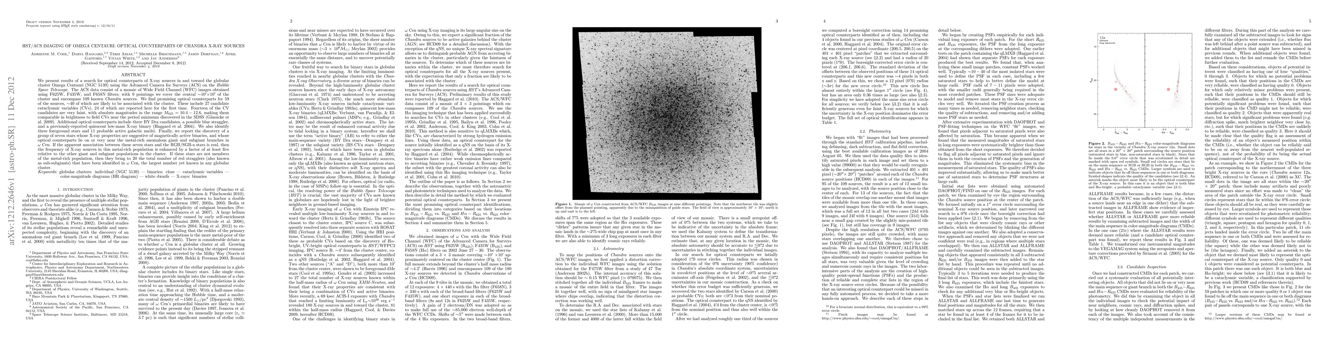 We present results of a search for optical counterparts of X-ray sources in and toward the globular cluster Omega Centauri (NGC 5139) using the Advanced Camera for Surveys (ACS) on the Hubble Space Telescope. The ACS data consist of a mosaic of Wide Field Channel (WFC) images obtained using F625W, F435W, and F658N filters; with 9 pointings we cover the central ~10'x10' of the cluster and encompass 109 known Chandra sources. We find promising optical counterparts for 59 of the sources, ~40 of which are likely to be associated with the cluster. These include 27 candidate cataclysmic variables (CVs), 24 of which are reported here for the first time. Fourteen of the CV candidates are very faint, with absolute magnitudes in the range M_625 = 10.4 - 12.6, making them comparable in brightness to field CVs near the period minimum discovered in the SDSS (Gansicke et al. 2009). Additional optical counterparts include three BY Dra candidates, a possible blue straggler, and a previously-reported quiescent low-mass X-ray binary (Haggard et al. 2004). We also identify three foreground stars and 11 probable active galactic nuclei. Finally, we report the discovery of a group of seven stars whose X-ray properties are suggestive of magnetically active binaries, and whose optical counterparts lie on or very near the metal-rich anomalous giant and subgiant branches in {\omega} Cen. If the apparent association between these seven stars and the RGB/SGB-a stars is real, then the frequency of X-ray sources in this metal-rich population is enhanced by a factor of at least five relative to the other giant and subgiant populations in the cluster. If these stars are not members of the metal-rich population, then they bring to 20 the total number of red stragglers (also known as sub-subgiants) that have been identified in {\omega} Cen, the largest number yet known in any globular cluster.