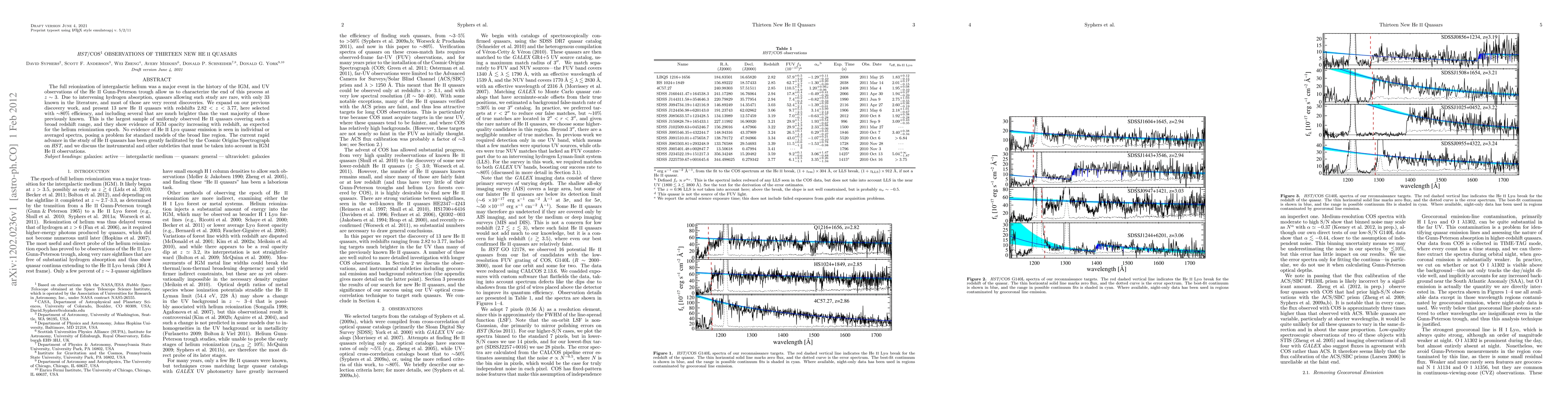 The full reionization of intergalactic helium was a major event in the history of the IGM, and UV observations of the He II Gunn-Peterson trough allow us to characterize the end of this process at z~3. Due to intervening hydrogen absorption, quasars allowing such study are rare, with only 33 known in the literature, and most of those are very recent discoveries. We expand on our previous discovery work, and present 13 new He II quasars with redshifts 2.82 < z < 3.77, here selected with ~80% efficiency, and including several that are much brighter than the vast majority of those previously known. This is the largest sample of uniformly observed He II quasars covering such a broad redshift range, and they show evidence of IGM opacity increasing with redshift, as expected for the helium reionization epoch. No evidence of He II Ly{\alpha} quasar emission is seen in individual or averaged spectra, posing a problem for standard models of the broad line region. The current rapid advance in the study of He II quasars has been greatly facilitated by the Cosmic Origins Spectrograph on HST, and we discuss the instrumental and other subtleties that must be taken into account in IGM He II observations.