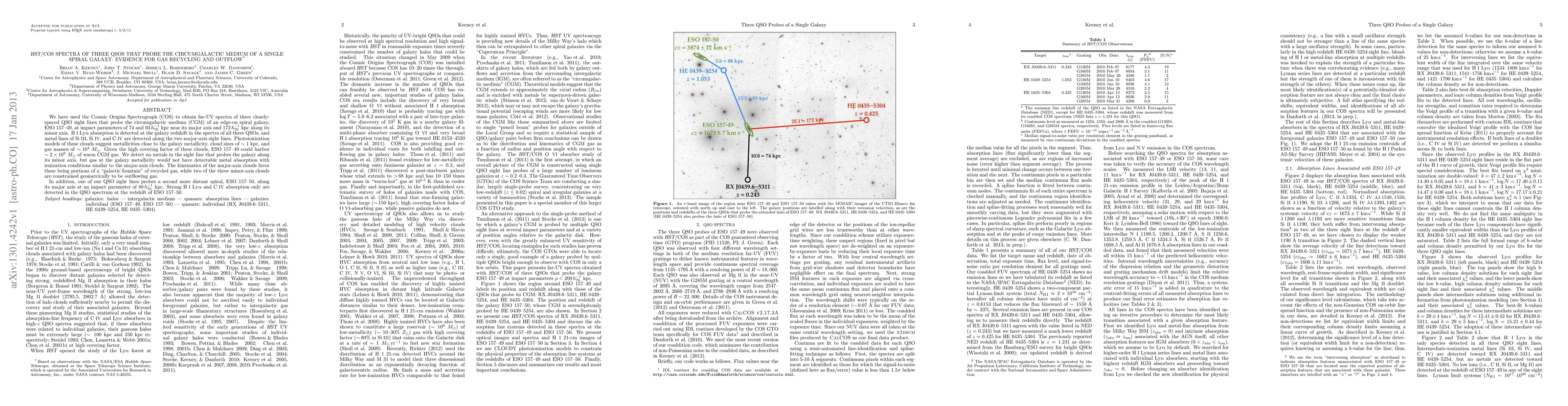 We have used the Cosmic Origins Spectrograph (COS) to obtain far-UV spectra of three closely-spaced QSO sight lines that probe the circumgalactic medium (CGM) of an edge-on spiral galaxy, ESO 157-49, at impact parameters of 74 and 93 kpc near its major axis and 172 kpc along its minor axis. H I Ly\alpha\ absorption is detected at the galaxy redshift in the spectra of all three QSOs, and metal lines of Si III, Si IV, and C IV are detected along the two major-axis sight lines. Photoionization models of these clouds suggest metallicities close to the galaxy metallicity, cloud sizes of ~1 kpc, and gas masses of ~10^4 solar masses. Given the high covering factor of these clouds, ESO 157-49 could harbor ~2x10^9 solar masses of warm CGM gas. We detect no metals in the sight line that probes the galaxy along its minor axis, but gas at the galaxy metallicity would not have detectable metal absorption with ionization conditions similar to the major-axis clouds. The kinematics of the major-axis clouds favor these being portions of a "galactic fountain" of recycled gas, while two of the three minor-axis clouds are constrained geometrically to be outflowing gas. In addition, one of our QSO sight lines probes a second more distant spiral, ESO 157-50, along its major axis at an impact parameter of 88 kpc. Strong H I Ly\alpha\ and C IV absorption only are detected in the QSO spectrum at the redshift of ESO 157-50.