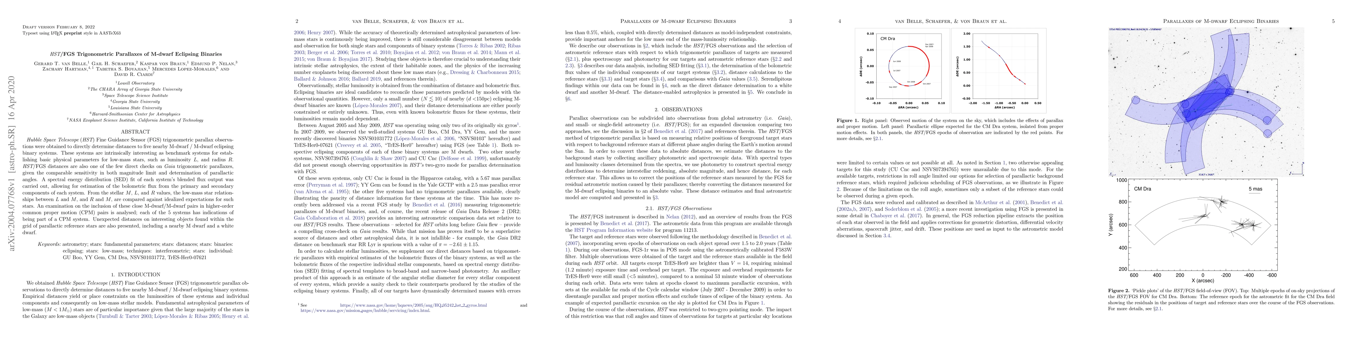 This paper uses HST/FGS trigonometric parallaxes to determine the distances of five M-dwarf eclipsing binary systems, serving as benchmarks for low-mass star parameters. The study also assesses these systems' positions in common proper motion groups and compares derived luminosity and radius relationships against theoretical models.