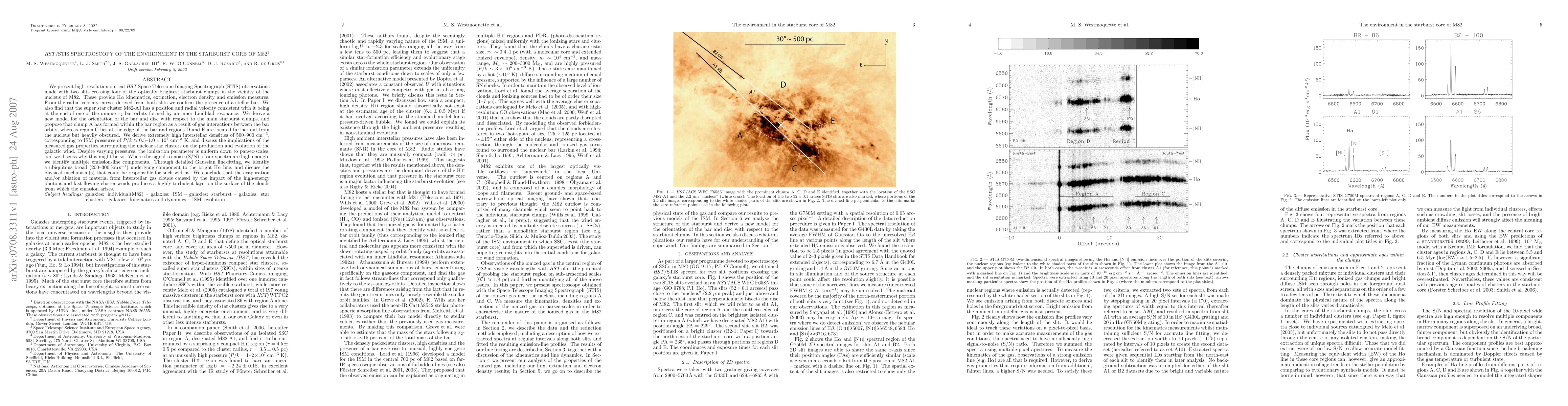 This study uses HST/STIS spectroscopy to analyze the starburst core of M82, revealing high-density interstellar environments and confirming the presence of a stellar bar. The findings suggest that starburst clumps formed due to gas interactions within the bar, and propose a model for the bar's orientation relative to the starburst regions.