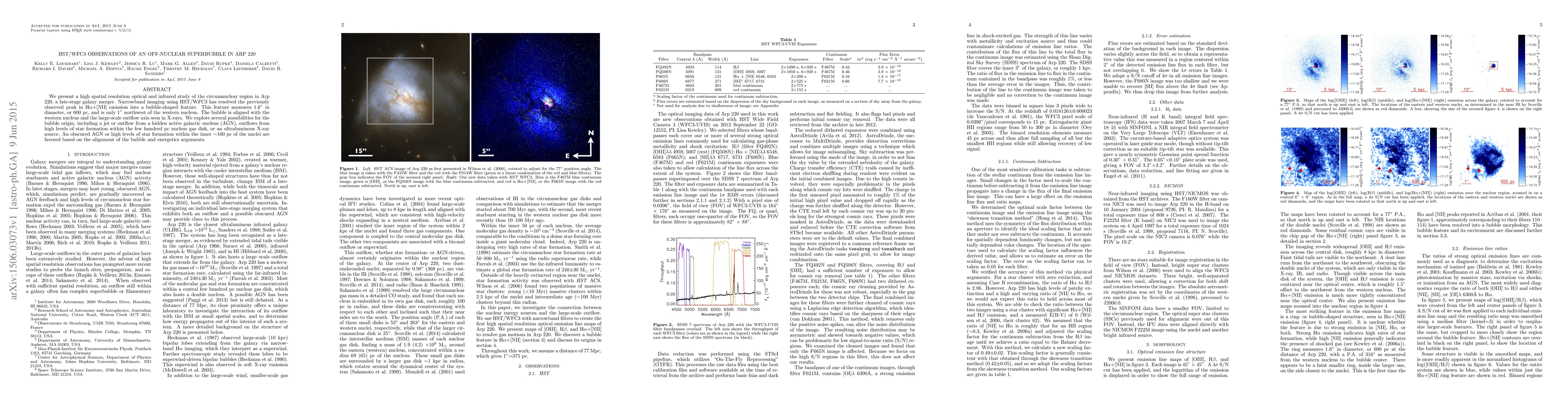 We present a high spatial resolution optical and infrared study of the circumnuclear region in Arp 220, a late-stage galaxy merger. Narrowband imaging using HST/WFC3 has resolved the previously observed peak in H$\alpha$+[NII] emission into a bubble-shaped feature. This feature measures 1.6" in diameter, or 600 pc, and is only 1" northwest of the western nucleus. The bubble is aligned with the western nucleus and the large-scale outflow axis seen in X-rays. We explore several possibilities for the bubble origin, including a jet or outflow from a hidden active galactic nucleus (AGN), outflows from high levels of star formation within the few hundred pc nuclear gas disk, or an ultraluminous X-ray source. An obscured AGN or high levels of star formation within the inner $\sim$100 pc of the nuclei are favored based on the alignment of the bubble and energetics arguments.