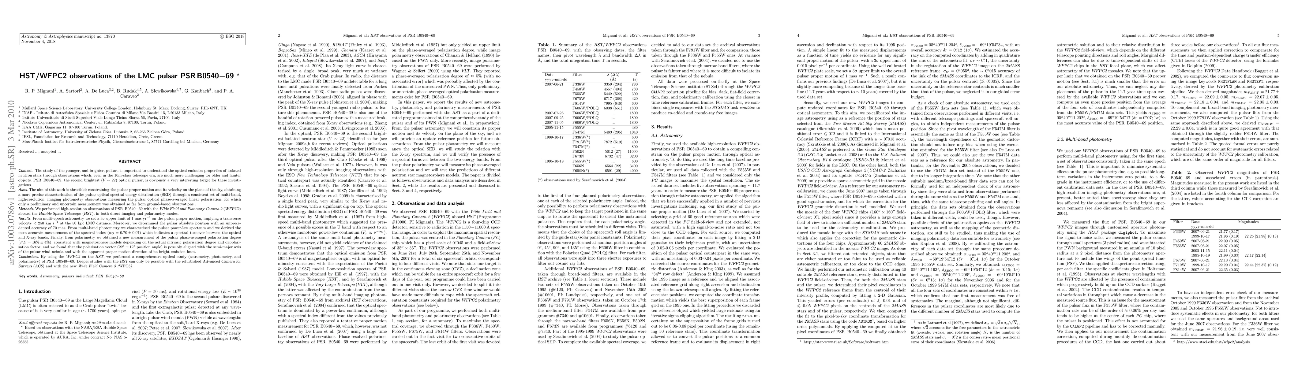 The study of the younger, and brighter, pulsars is important to understand the optical emission properties of isolated neutron stars. PSRB0540-69, the second brightest (V~22) optical pulsar, is obviously a very interesting target for these investigations. The aim of this work is threefold: constraining the pulsar proper motion and its velocity on the plane of the sky through optical astrometry, obtaining a more precise characterisation of the pulsar optical spectral energy distribution (SED) through a consistent set of multi-band, high-resolution, imaging photometry observations, measuring the pulsar optical phase-averaged linear polarisation, for which only a preliminary and uncertain measurement was obtained so far from ground-based observations. We performed high-resolution observations of PSRB0540-69 with the WFPC2 aboard the HST, in both direct imaging and polarimetry modes. From multi-epoch astrometry we set a 3sigma upper limit of 1 mas/yr on the pulsar proper motion, implying a transverse velocity <250 km/s at the 50 kpc LMC distance. Moreover, we determined the pulsar absolute position with an unprecedented accuracy of 70 mas. From multi-band photometry we characterised the pulsar power-law spectrum and we derived the most accurate measurement of the spectral index (0.70+/-0.07) which indicates a spectral turnover between the optical and X-ray bands. Finally, from polarimetry we obtained a new measurement of the pulsar phase-averaged polarisation degree (16+/-4%),consistent with magnetosphere models depending on the actual intrinsic polarisation degree and depolarisation factor, and we found that the polarisation vector (22+/-12deg position angle) is possibly aligned with the semi-major axis of the pulsar-wind nebula and with the apparent proper motion direction of its bright emission knot.