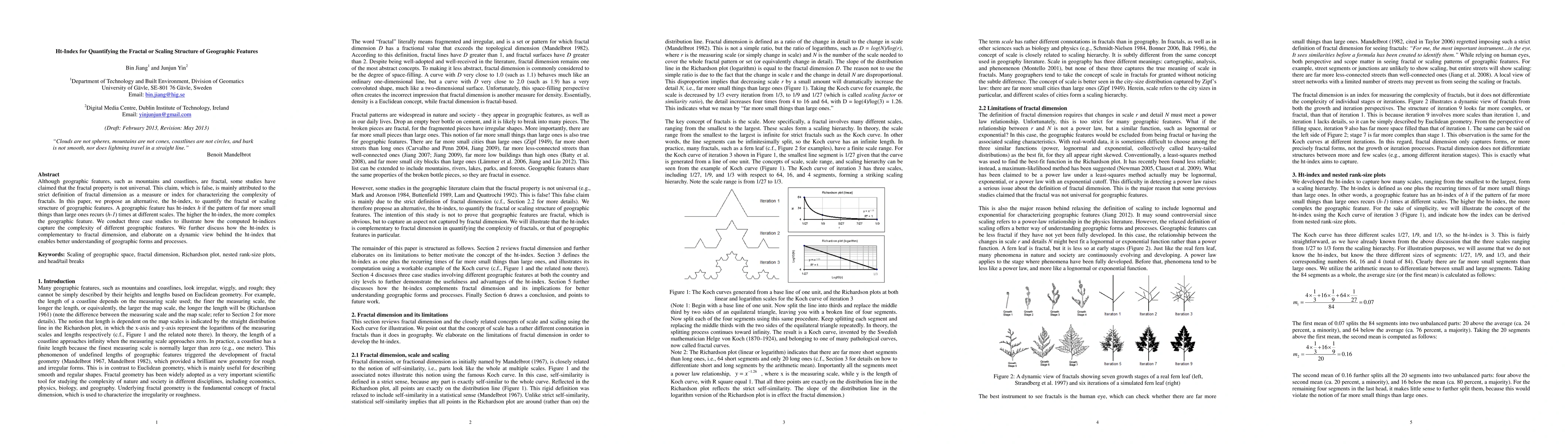 This paper introduces the ht-index to quantify the complexity of geographic features, emphasizing their fractal or scaling structures. The ht-index captures the pattern of more small than large entities recurring at different scales, with higher values indicating greater complexity. The authors demonstrate its effectiveness through case studies and discuss its complementarity to fractal dimension, offering a dynamic perspective on understanding geographic forms and processes.