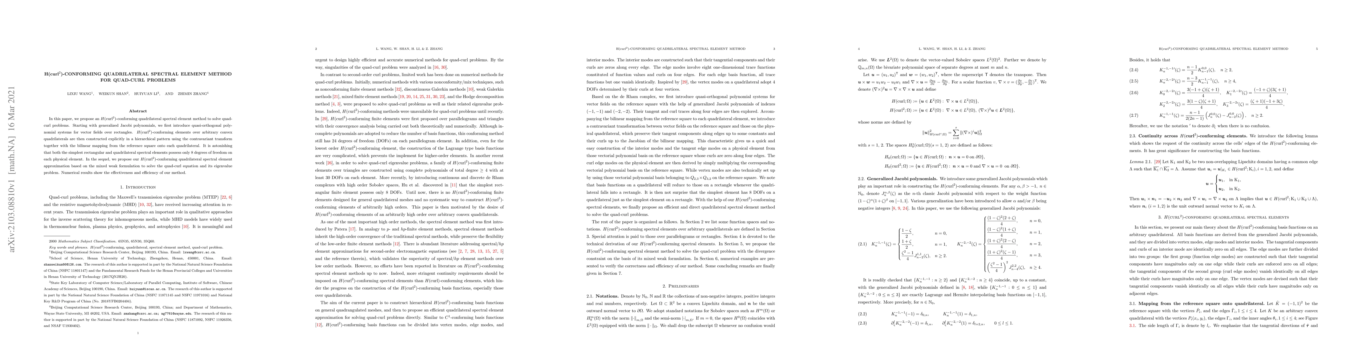 The paper proposes an $H(\text{curl}^2)$-conforming quadrilateral spectral element method using generalized Jacobi polynomials, constructing elements explicitly over arbitrary convex quadrilaterals via hierarchical patterns and contravariant transform.