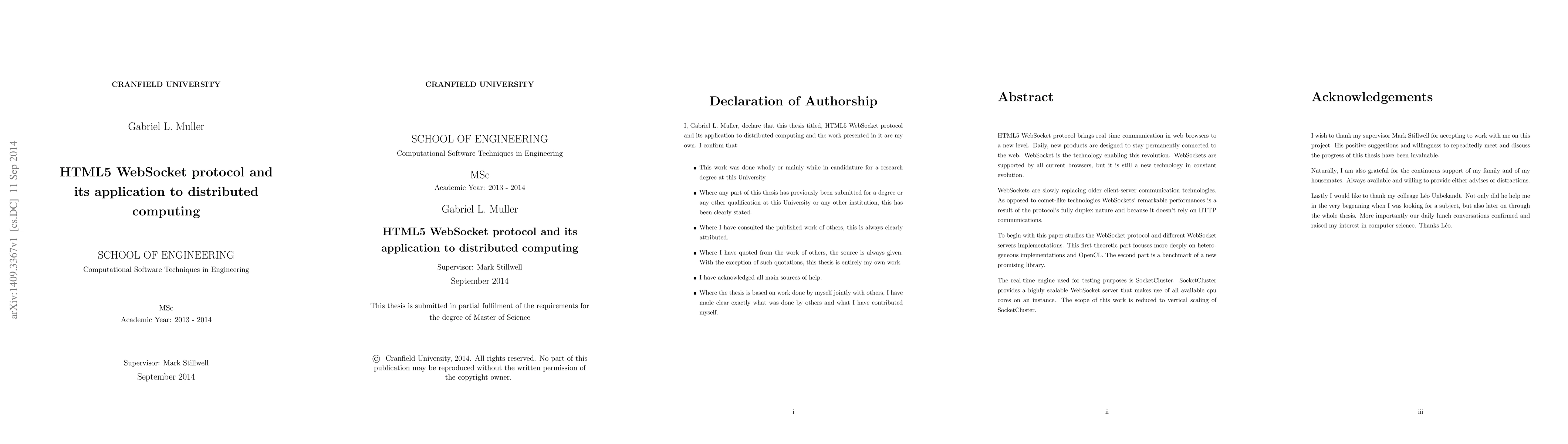 HTML5 WebSocket protocol brings real time communication in web browsers to a new level. Daily, new products are designed to stay permanently connected to the web. WebSocket is the technology enabling this revolution. WebSockets are supported by all current browsers, but it is still a new technology in constant evolution. WebSockets are slowly replacing older client-server communication technologies. As opposed to comet-like technologies WebSockets' remarkable performances is a result of the protocol's fully duplex nature and because it doesn't rely on HTTP communications. To begin with this paper studies the WebSocket protocol and different WebSocket servers implementations. This first theoretic part focuses more deeply on heterogeneous implementations and OpenCL. The second part is a benchmark of a new promising library. The real-time engine used for testing purposes is SocketCluster. SocketCluster provides a highly scalable WebSocket server that makes use of all available cpu cores on an instance. The scope of this work is reduced to vertical scaling of SocketCluster.