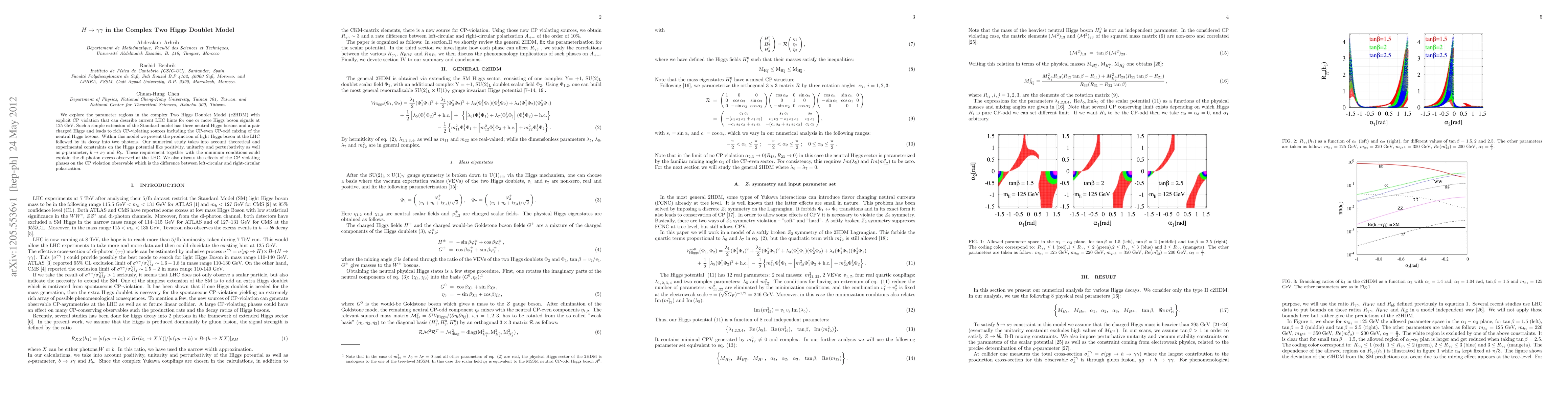 We explore the parameter regions in the complex Two Higgs Doublet Model (c2HDM) with explicit CP violation that can describe current LHC hints for one or more Higgs boson signals at 125 GeV. Such a simple extension of the Standard model has three neutral Higgs bosons and a pair charged Higgs and leads to rich CP-violating sources including the CP-even CP-odd mixing of the neutral Higgs bosons. Within this model we present the production of light Higgs boson at the LHC followed by its decay into two photons. Our numerical study takes into account theoretical and experimental constraints on the Higgs potential like positivity, unitarity and perturbativity as well as $\rho$-parameter, $b\to s\gamma$ and $R_b$. These requirement together with the minimum conditions could explain the di-photon excess observed at the LHC. We also discuss the effects of the CP violating phases on the CP violation observable which is the difference between left-circular and right-circular polarization.