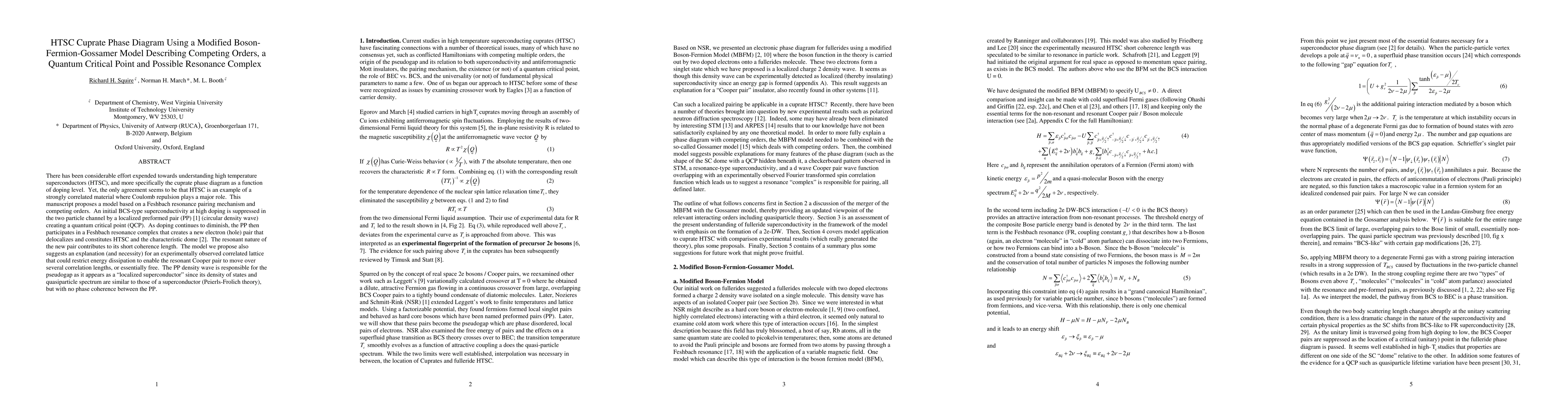 There has been considerable effort expended towards understanding high temperature superconductors (HTSC), and more specifically the cuprate phase diagram as a function of doping level. Yet, the only agreement seems to be that HTSC is an example of a strongly correlated material where Coulomb repulsion plays a major role. This manuscript proposes a model based on a Feshbach resonance pairing mechanism and competing orders. An initial BCS-type superconductivity at high doping is suppressed in the two particle channel by a localized preformed pair (PP) [1] (circular density wave) creating a quantum critical point (QCP). As doping continues to diminish, the PP then participates in a Feshbach resonance complex that creates a new electron (hole) pair that delocalizes and constitutes HTSC and the characteristic dome [2]. The resonant nature of the new pair contributes to its short coherence length. The model we propose also suggests an explanation (and necessity) for an experimentally observed correlated lattice that could restrict energy dissipation to enable the resonant Cooper pair to move over several correlation lengths, or essentially free. The PP density wave is responsible for the pseudogap as it appears as a localized superconductor since its density of states and quasiparticle spectrum are similar to those of a superconductor (Peierls-Frolich theory), but with no phase coherence between the PP.