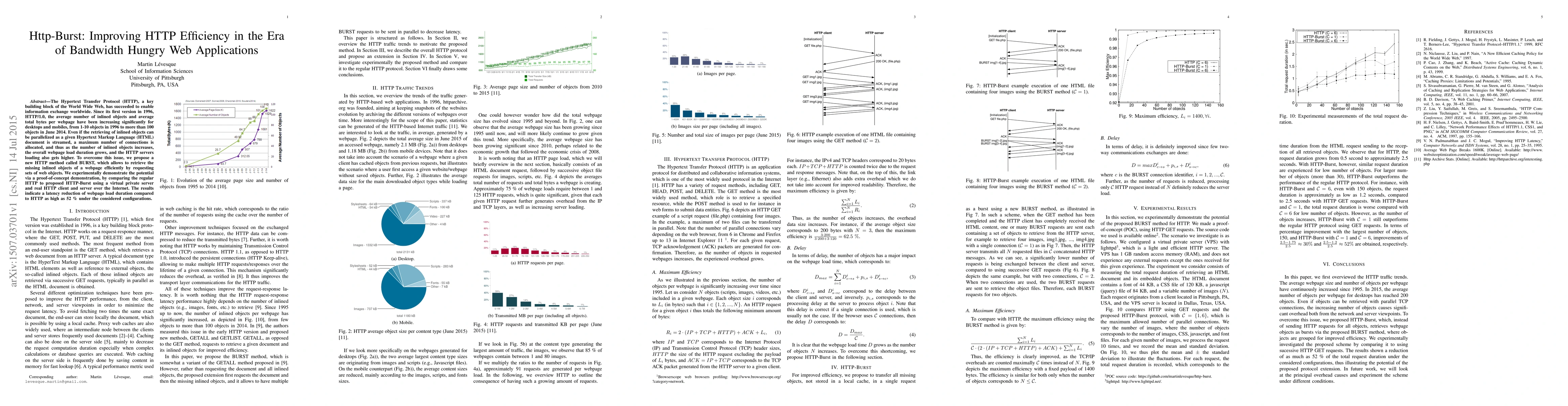 A new HTTP method called BURST reduces webpage load duration by up to 52% by requesting sets of web objects instead of individual inlined objects.