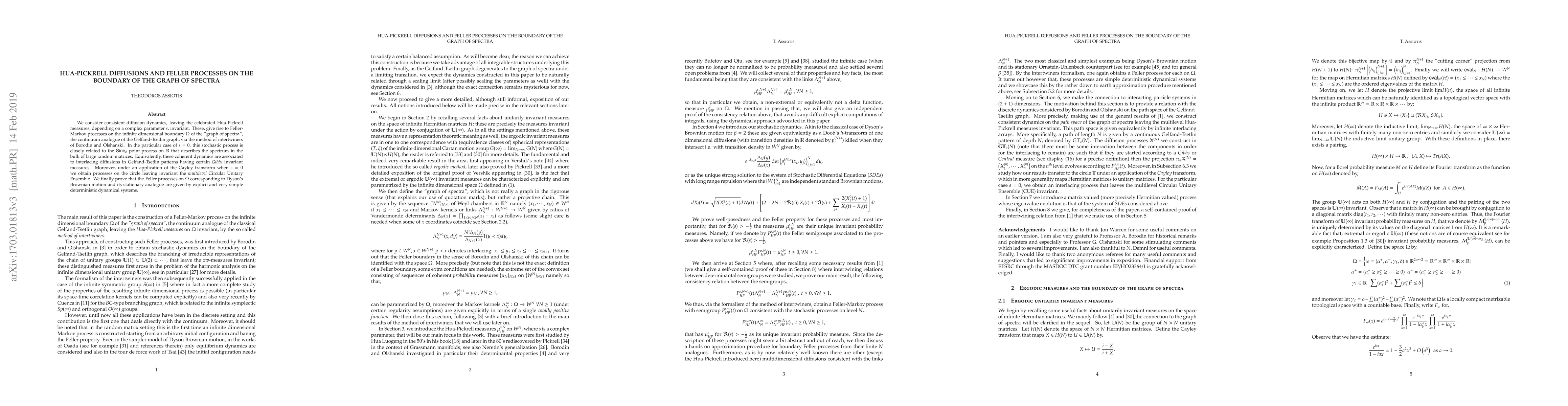 We consider consistent diffusion dynamics, leaving the celebrated Hua-Pickrell measures, depending on a complex parameter $s$, invariant. These, give rise to Feller-Markov processes on the infinite dimensional boundary $\Omega$ of the "graph of spectra", the continuum analogue of the Gelfand-Tsetlin graph, via the method of intertwiners of Borodin and Olshanski. In the particular case of $s=0$, this stochastic process is closely related to the $\mathsf{Sine_2}$ point process on $\mathbb{R}$ that describes the spectrum in the bulk of large random matrices. Equivalently, these coherent dynamics are associated to interlacing diffusions in Gelfand-Tsetlin patterns having certain Gibbs invariant measures. Moreover, under an application of the Cayley transform when $s=0$ we obtain processes on the circle leaving invariant the multilevel Circular Unitary Ensemble. We finally prove that the Feller processes on $\Omega$ corresponding to Dyson's Brownian motion and its stationary analogue are given by explicit and very simple deterministic dynamical systems.