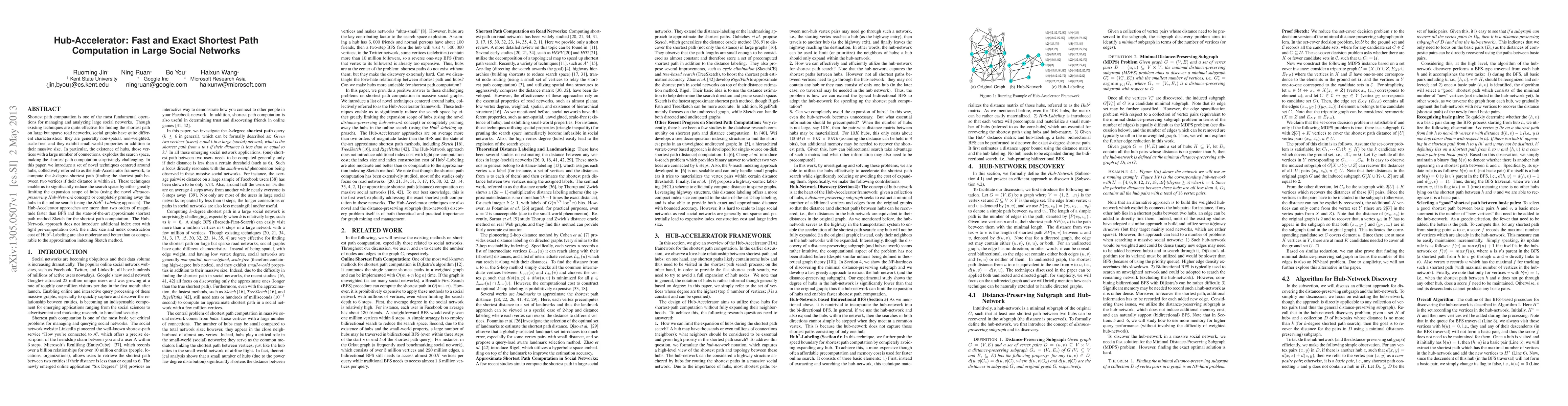This paper presents the Hub-Accelerator framework, a set of techniques to efficiently compute k-degree shortest paths in large social networks by leveraging the properties of hubs. The methods—Hub-Network and Hub2-Labeling—dramatically reduce search space and achieve over two orders of magnitude speedup compared to BFS and Sketch, while maintaining low index costs.