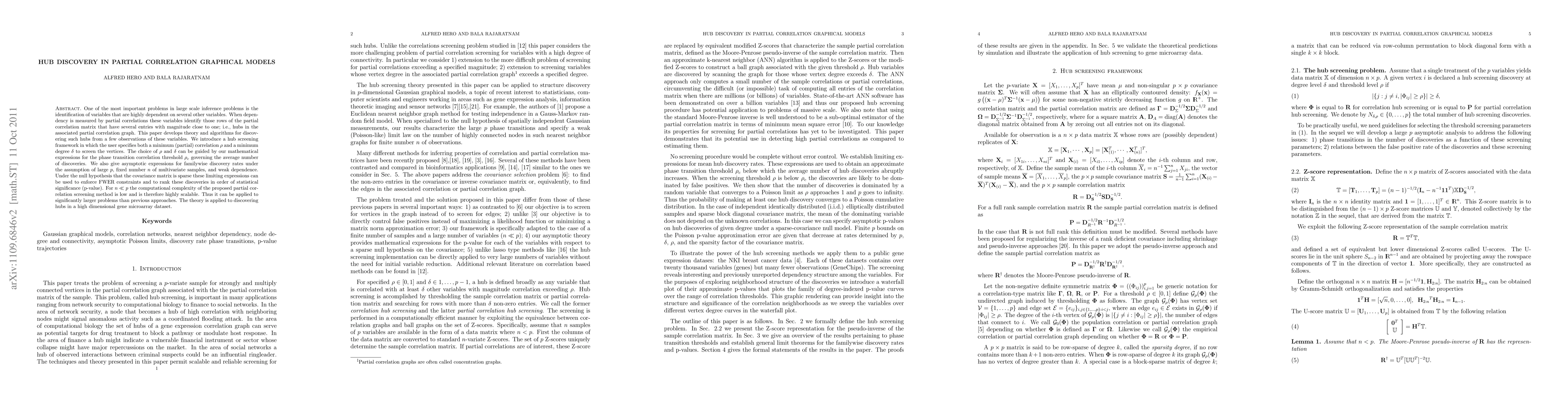 This paper develops scalable techniques for identifying strongly connected nodes (hubs) in partial correlation graphs, which are crucial for applications in network security, computational biology, finance, and social networks. It extends previous correlation screening methods to handle partial correlations and high vertex degrees in the context of partial correlation matrices.