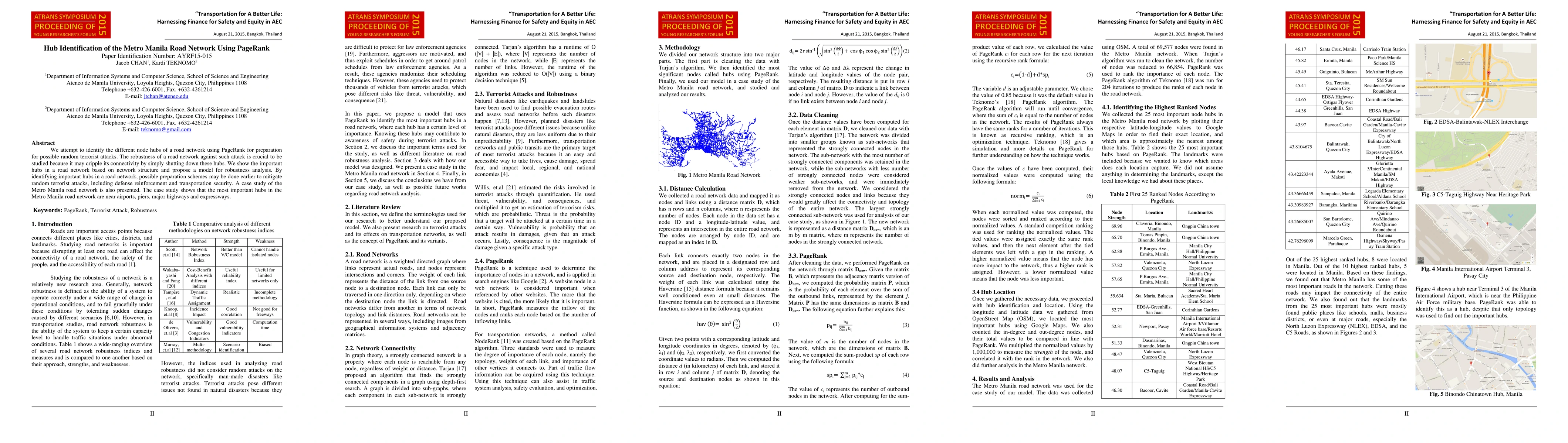 This paper identifies critical hubs in the Metro Manila road network using PageRank to enhance preparedness against potential terrorist attacks. The study highlights key hubs near airports, piers, and major highways, proposing a model for assessing network robustness and suggesting preemptive measures for security.