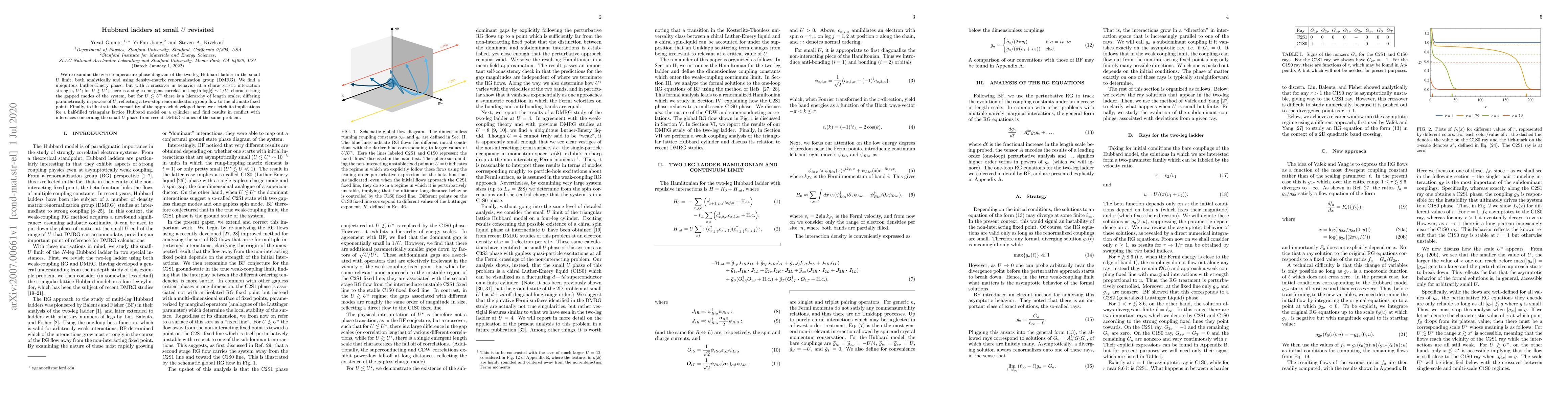 Researchers re-examined the Hubbard ladder at low interaction strength U, finding a single emergent correlation length beyond a crossover point U*, but two-step renormalization group flow for lower U values, contradicting previous findings on a related triangular lattice model.