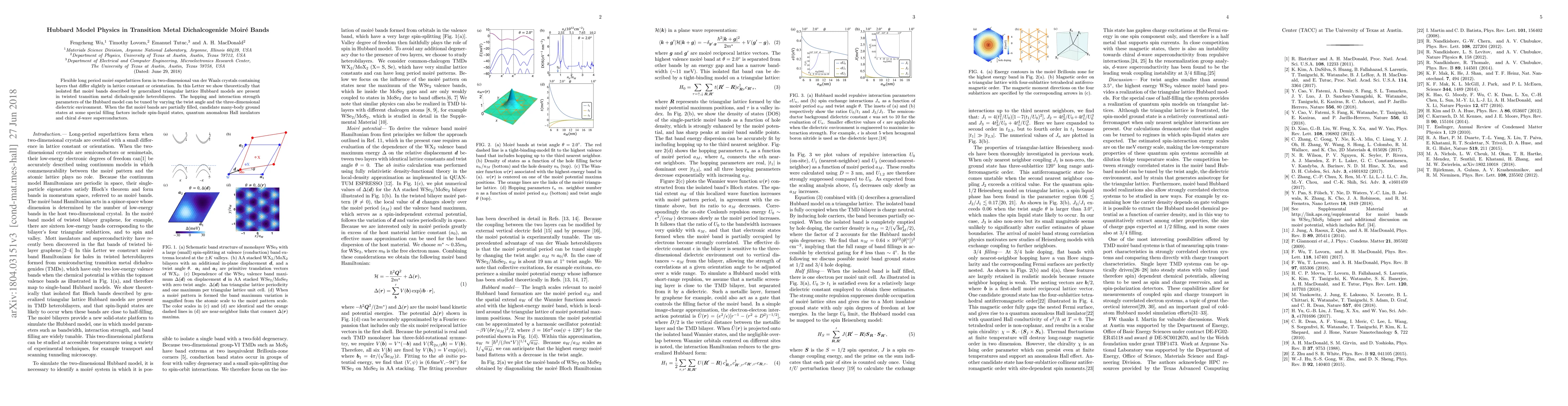 This research theoretically demonstrates the presence of Hubbard model physics in flat moiré bands of twisted transition metal dichalcogenide heterobilayers, where the model's parameters are adjustable through twist angle and dielectric environment. Potential ground states include spin-liquids, quantum anomalous Hall insulators, and chiral $d$-wave superconductors.